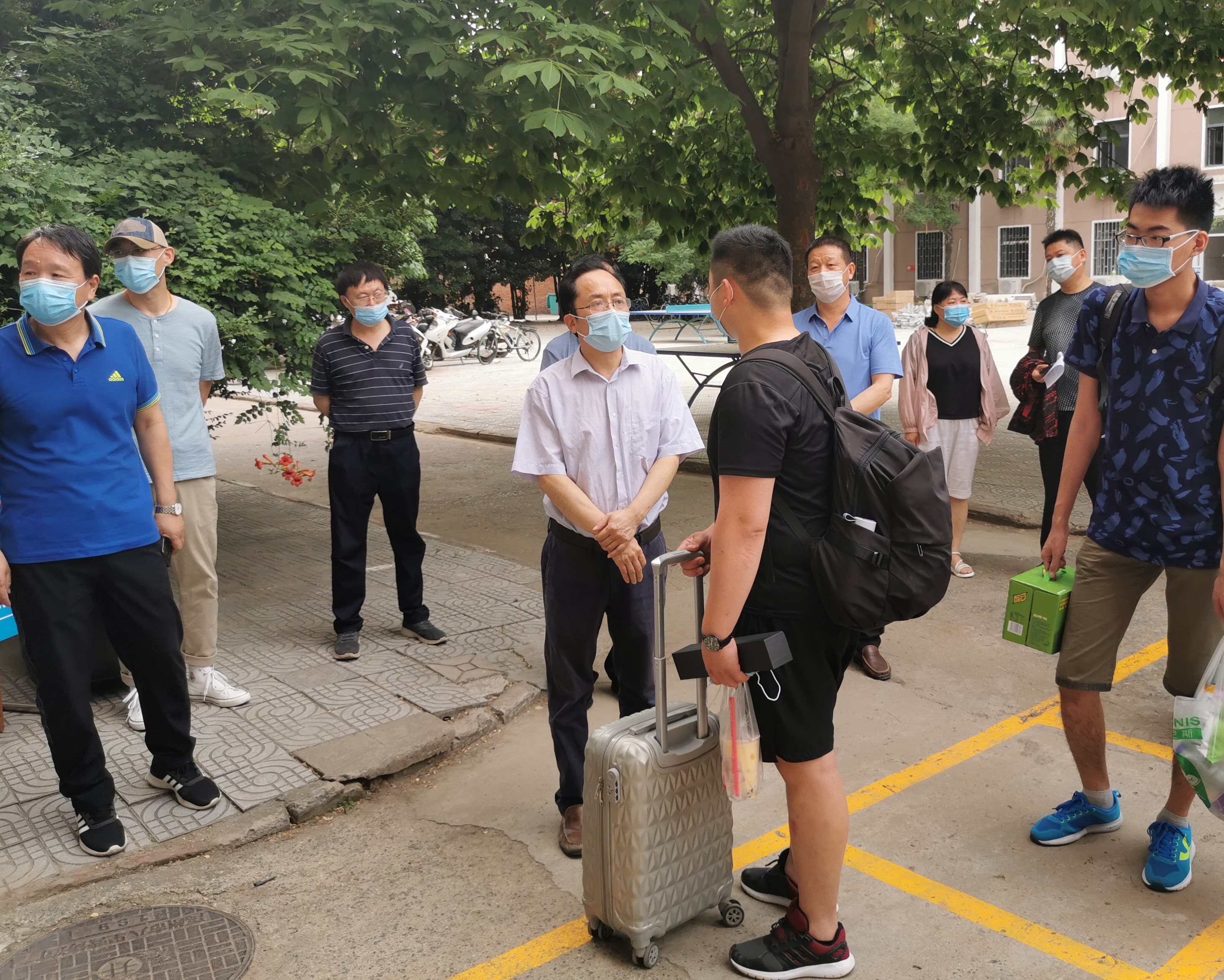 学校安排接送专车和志愿者在火车站、机场做好接站服务,学生到站后统一乘车直达各校区,有效减少个人回校路途风险。在主校区南门口,校领导与返校学生亲切交流,仔细询问返校过程、毕业答辩进展等情况,并叮嘱同学们科学做好个人防护,自觉遵守校园防控秩序,珍惜来之不易的学习机会,加倍努力积极投身学习科研。