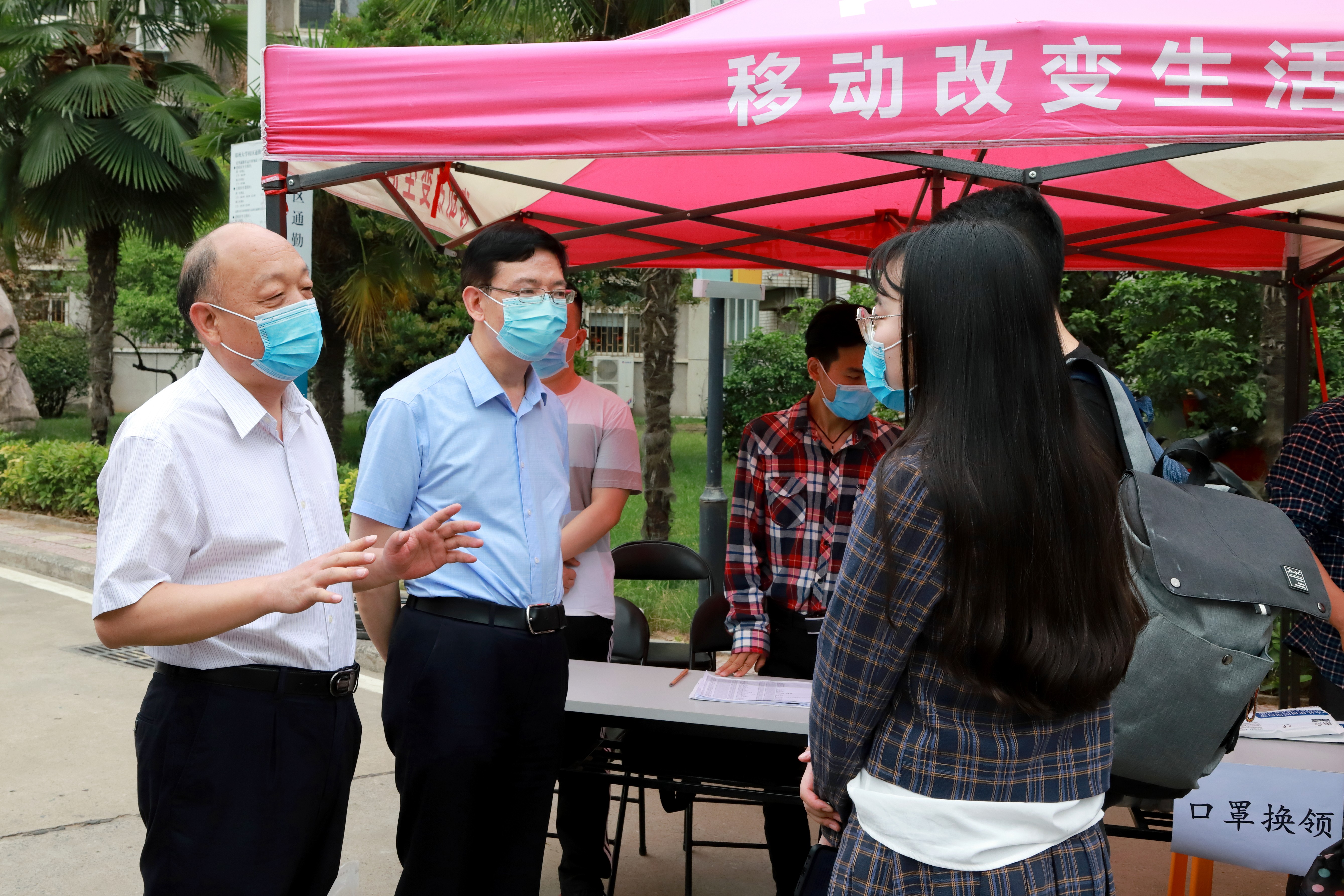 当天上午,郑州市社会防控部信息综合组组长高晓华、副组长杨耀环,高新区管委会党的建设和社会管理、信访稳定工作领导小组副组长兼办公室主任赵毅,来校调研督查返校复学情况,对学校学生返校工作安全顺畅、规范高效给予充分肯定。校领导屈凌波、谷振清、韩国河参加调研,并到主校区大门、学生宿舍和餐厅、生活服务网点、校外核酸检测采样点等地检查指导返校工作。校领导李兴成、贾少鑫、张倩红、许东升、关绍康、董子钢分别到南校区、医学院校区、北校区和火车站,实地查看学生返校情况,对工作人员和志愿者表示慰问。