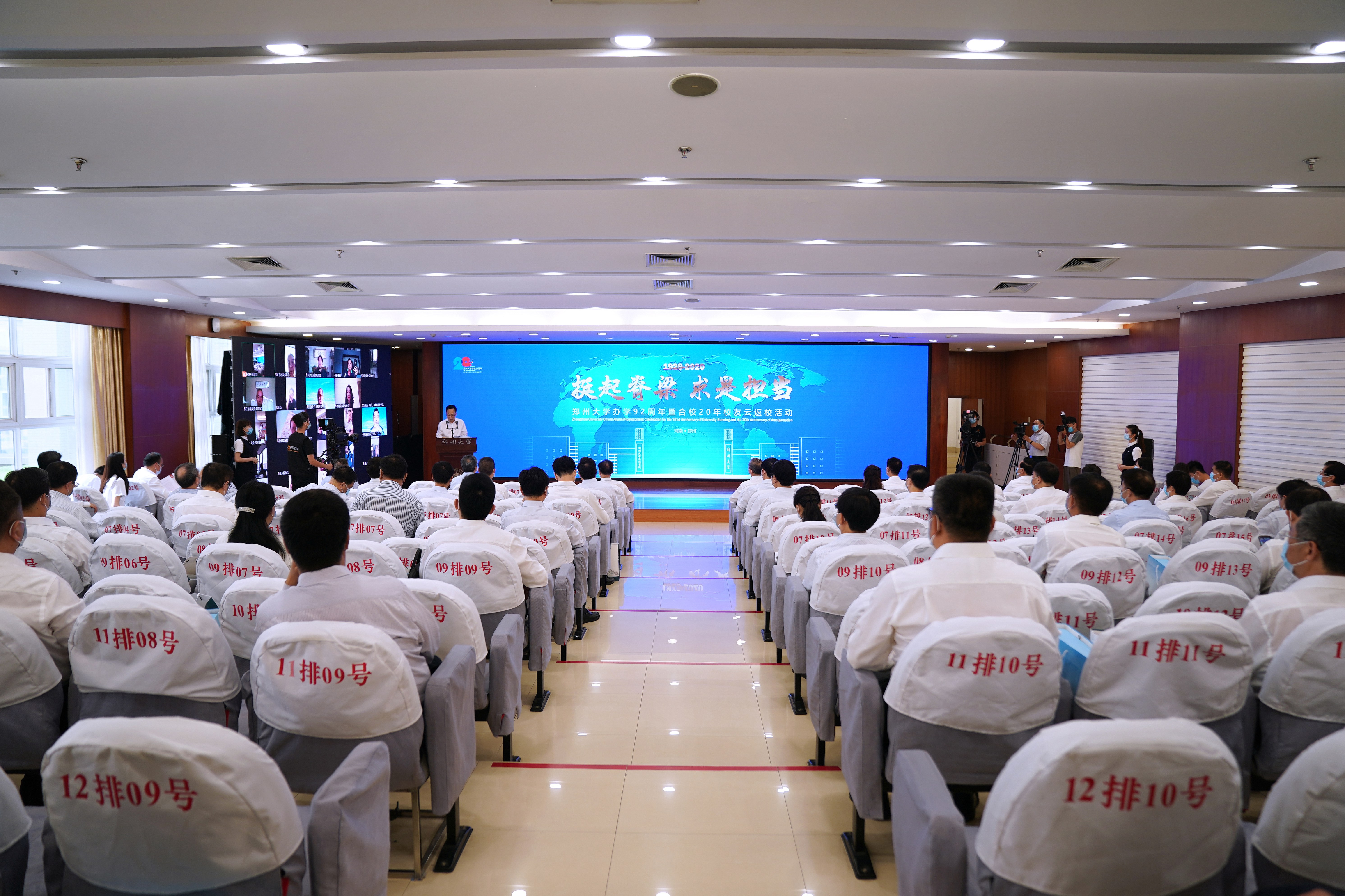 九十二年筚路蓝缕,二十载砥砺奋进。6月14日上午九时,以“挺起脊梁 求是担当”为主题的“best365英国在线体育官网办学92周年暨合校20年校友云返校活动”在庄严的国歌声中拉开帷幕。河南省人大常委会原副主任蒋笃运,河南省委宣传部原常务副部长、best365英国在线体育官网省直校友会会长葛纪谦,校领导宋争辉、刘炯天、屈凌波、李兴成、谷振清、张倩红、关绍康、韩国河、吴宏阳、赵明皞、董子钢,西亚斯国际学院党委书记马建生,best365英国在线体育官网校友会会长牛书成,相关单位负责同志和师生校友代表共80余人参加现场启动仪式。全校师生员工、海内外校友和关心郑大发展的各界人士相聚“云端”,共襄盛事。活动通过目睹直播、腾讯会议、YouTube等平台同步向全球播出。
