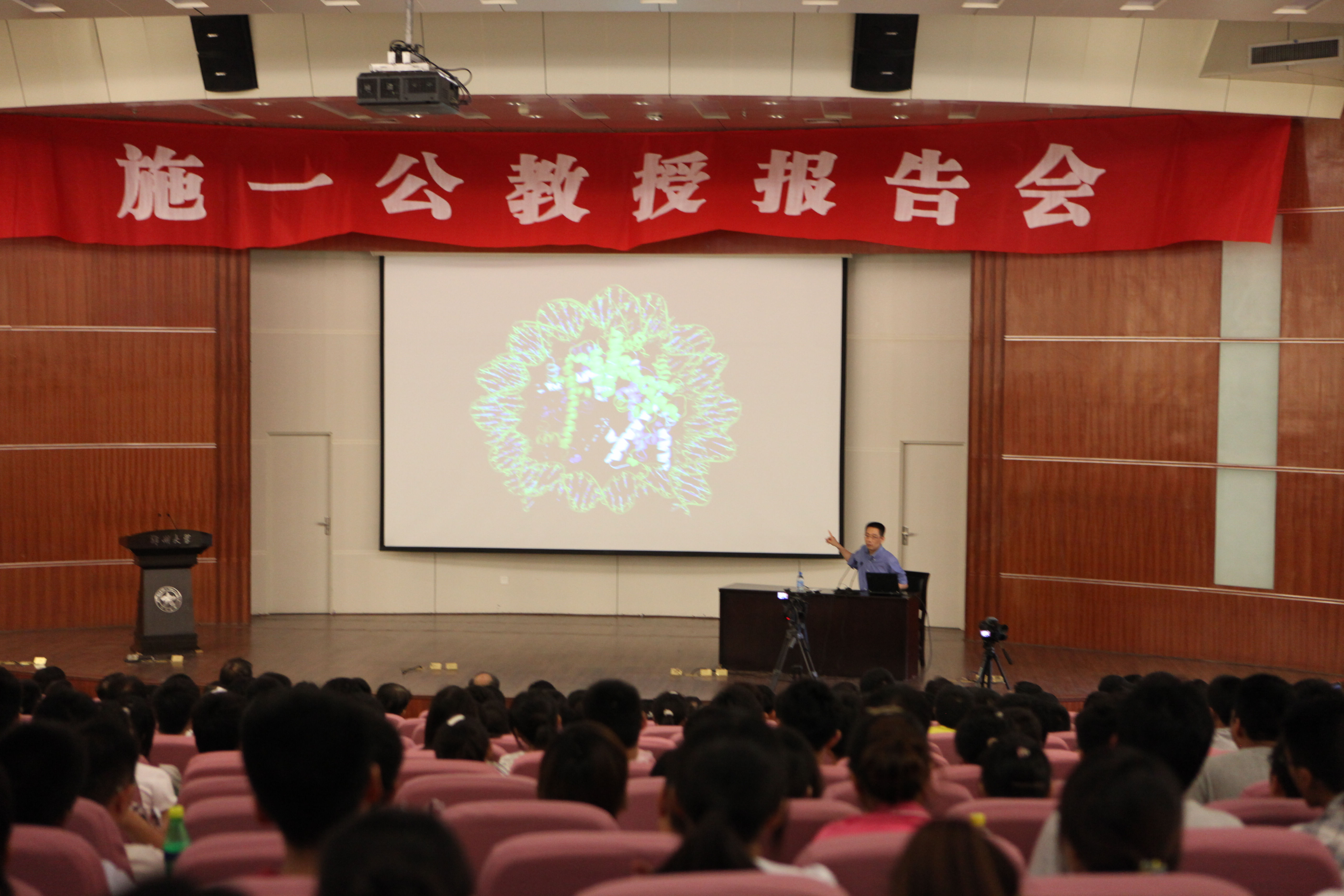 施一公教授从宇宙与我们的生存环境开篇,为大家展现了众多享誉世界的宇宙之图。施教授还向大家介绍了当今生命科学的四大支柱:遗传学、细胞生物学、生物化学和结构生物学。他认为,结构生物学是现代生命科学研究的重要主流前沿方向,对于解决一系列生命领域重大基础科学问题,可以帮助科学家根据疾病细胞的特殊结构设计药物,从而更有效的进行治疗,不断提高人的生活质量。