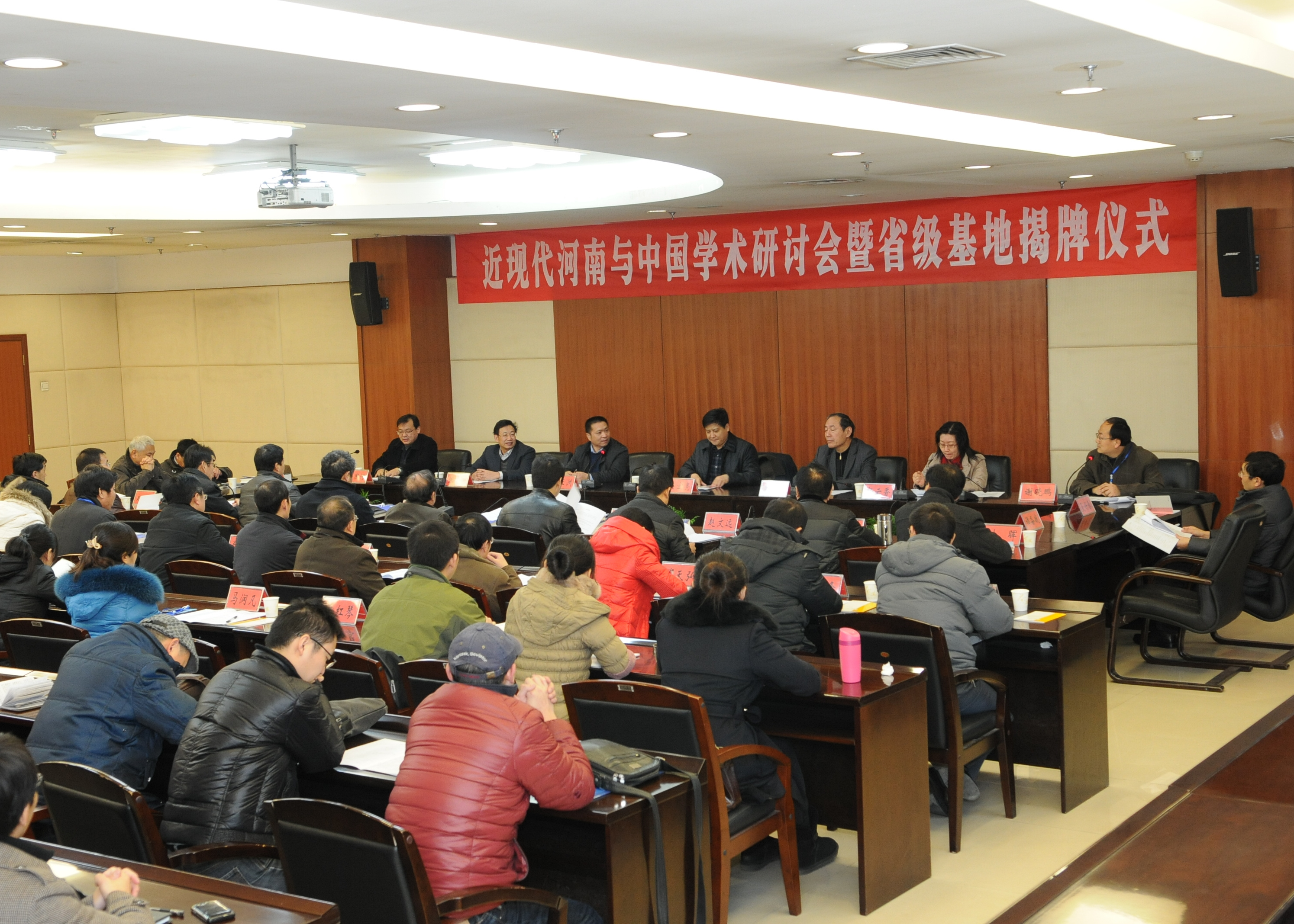 由best365官网历史学院和近现代河南与中国研究中心主办的近现代河南与中国学术研讨会暨省级基地揭牌仪式12月23日在综合管理中心举行。河南省教育厅社科处处长王亚洲、省委党史研究室副厅级巡视员郭晓平、洛阳师范学院党委副书记张宝明、best365官网党委副书记兼近现代河南与中国研究中心主任吴宏亮以及社科办、历史学院和省内部分高校和研究机构的代表出席了会议。