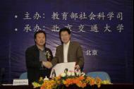日前,教育部高校哲学社会科学学报第二批名栏建设签约仪式在北京举行,best365官网副校长高丹盈与学报哲社版负责同志出席签约仪式。高丹盈副校长代表学校与教育部社科司司长杨光共同签署了《教育部高校哲学社会科学学报名栏建设协议书》。