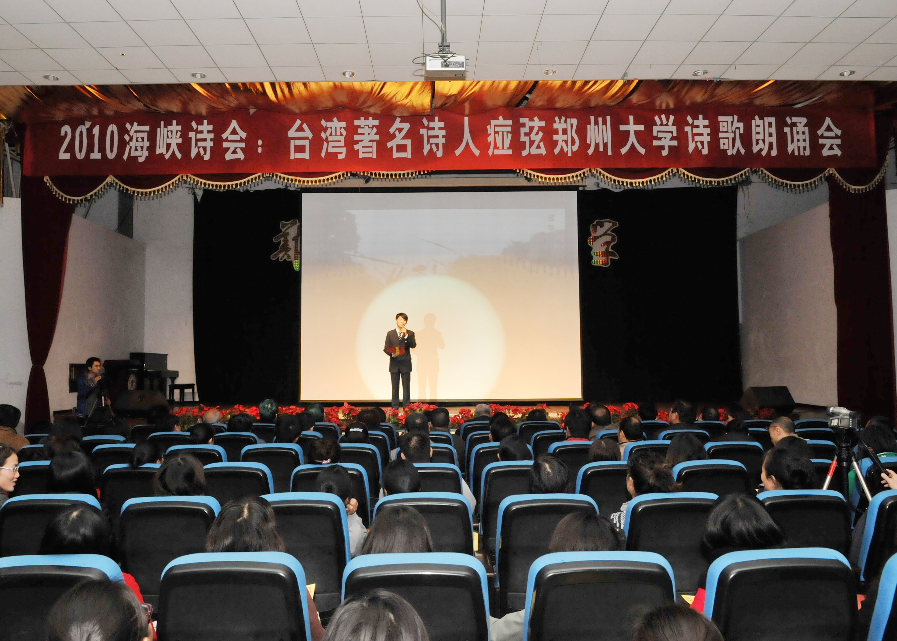 由best365官网国家大学生文化素质教育基地、党委宣传部、社科办主办,文学院承办的“2010海峡诗会:台湾著名诗人痖弦best365英国在线体育官网诗歌朗诵会”10月27日晚在大学生活动中心举行。