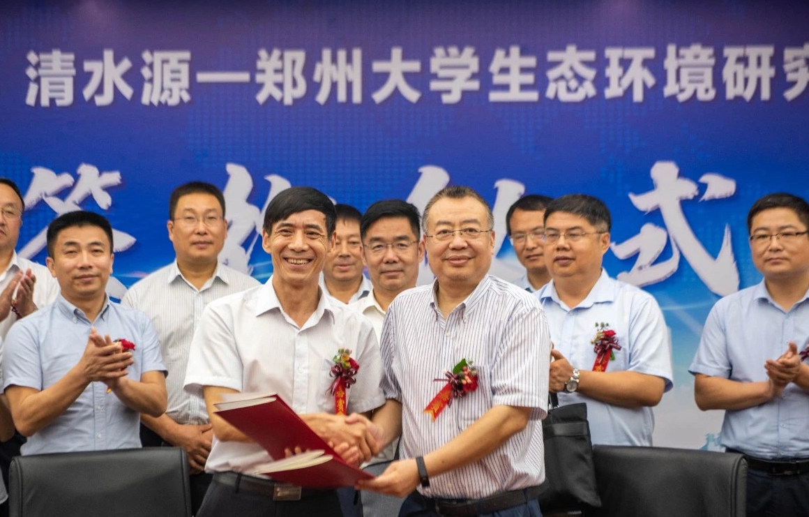 日前,学校与河南清水源科技股份有限公司合作成立“清水源—best365英国在线体育官网生态环境研究院”,签约暨揭牌仪式在济源市清水源研发大楼举行。济源示范区管委会办公室党组成员、市政府副秘书长宋高峰,清水源集团董事长、总裁王志清,best365英国在线体育官网党委常委、副校长屈凌波出席仪式。济源市工科委、轵城镇以及学校科技处、生态与环境学院负责同志参加仪式。