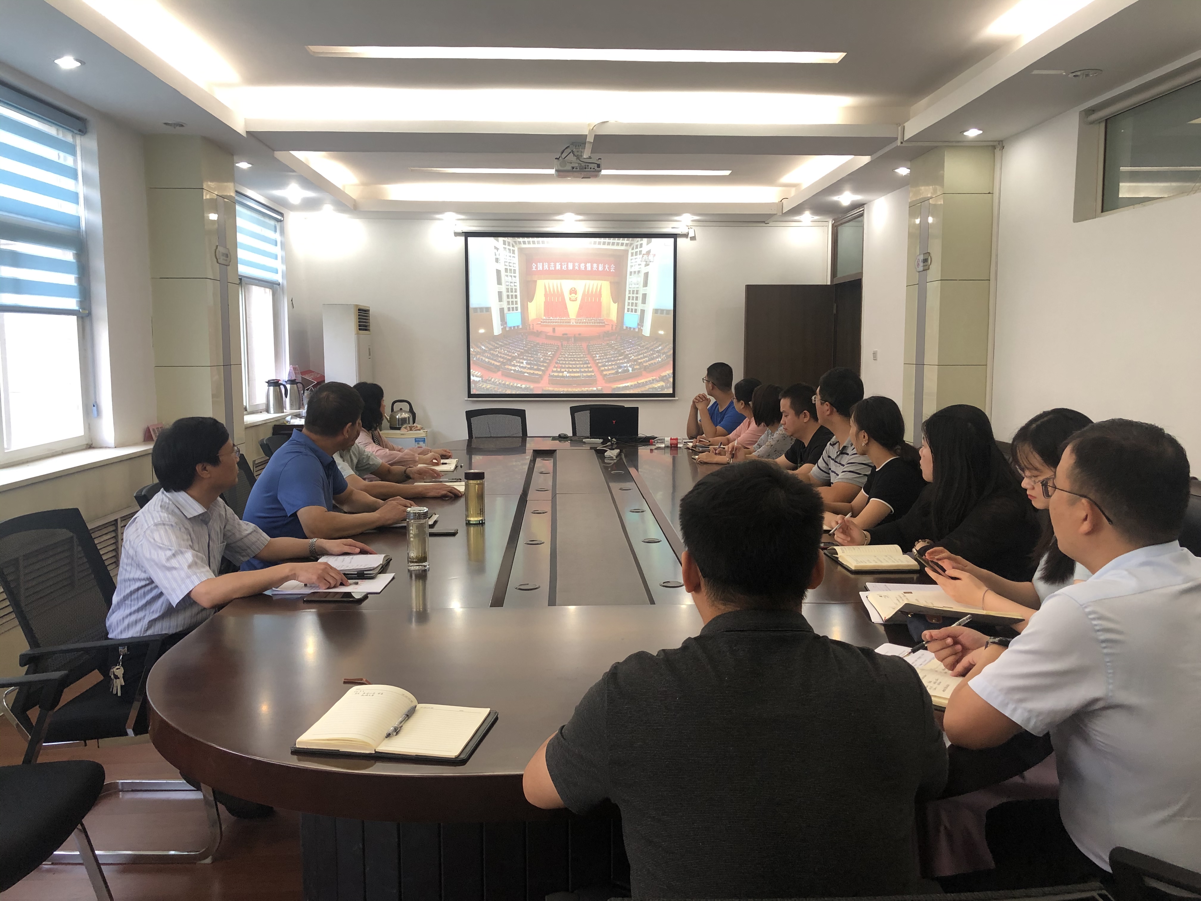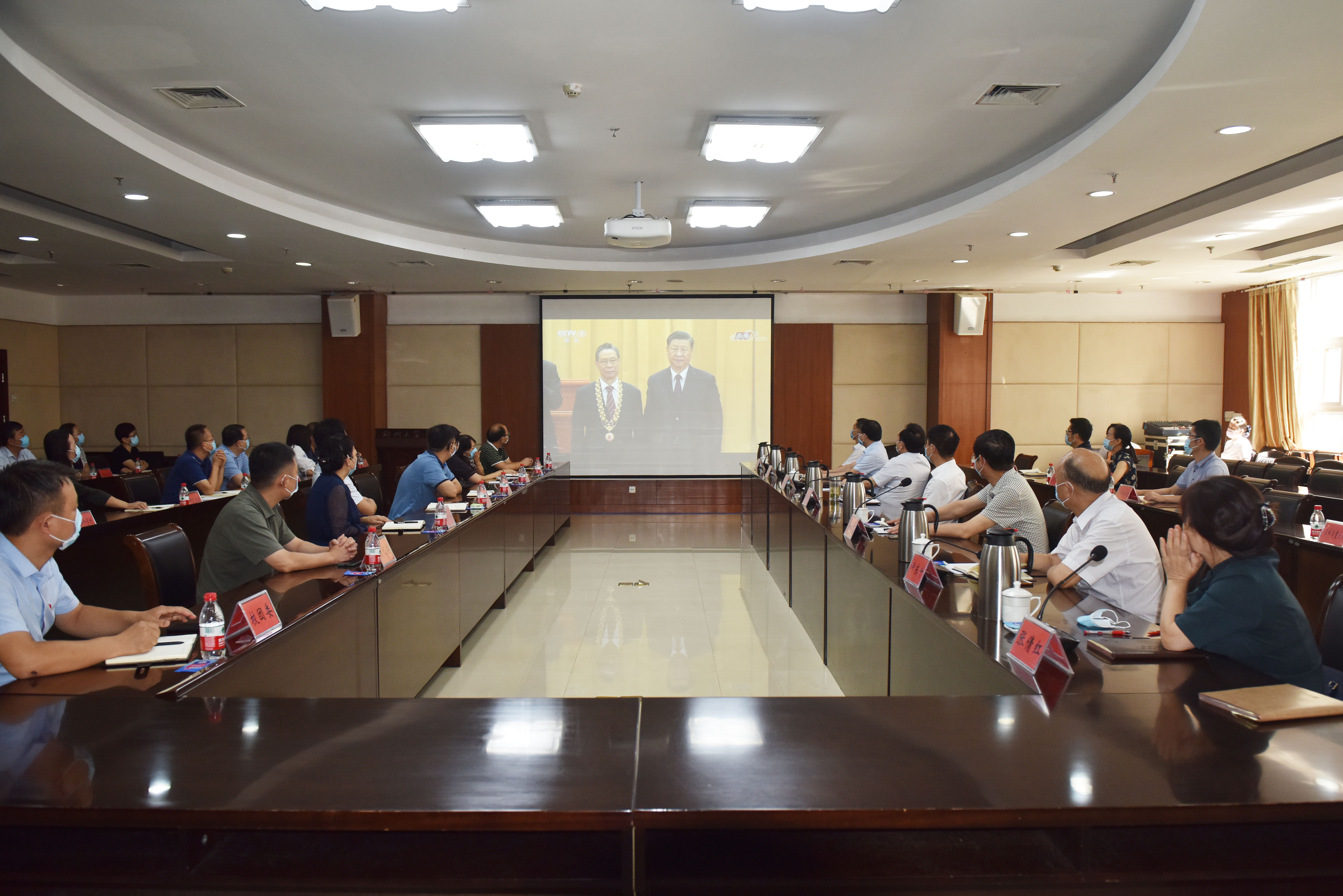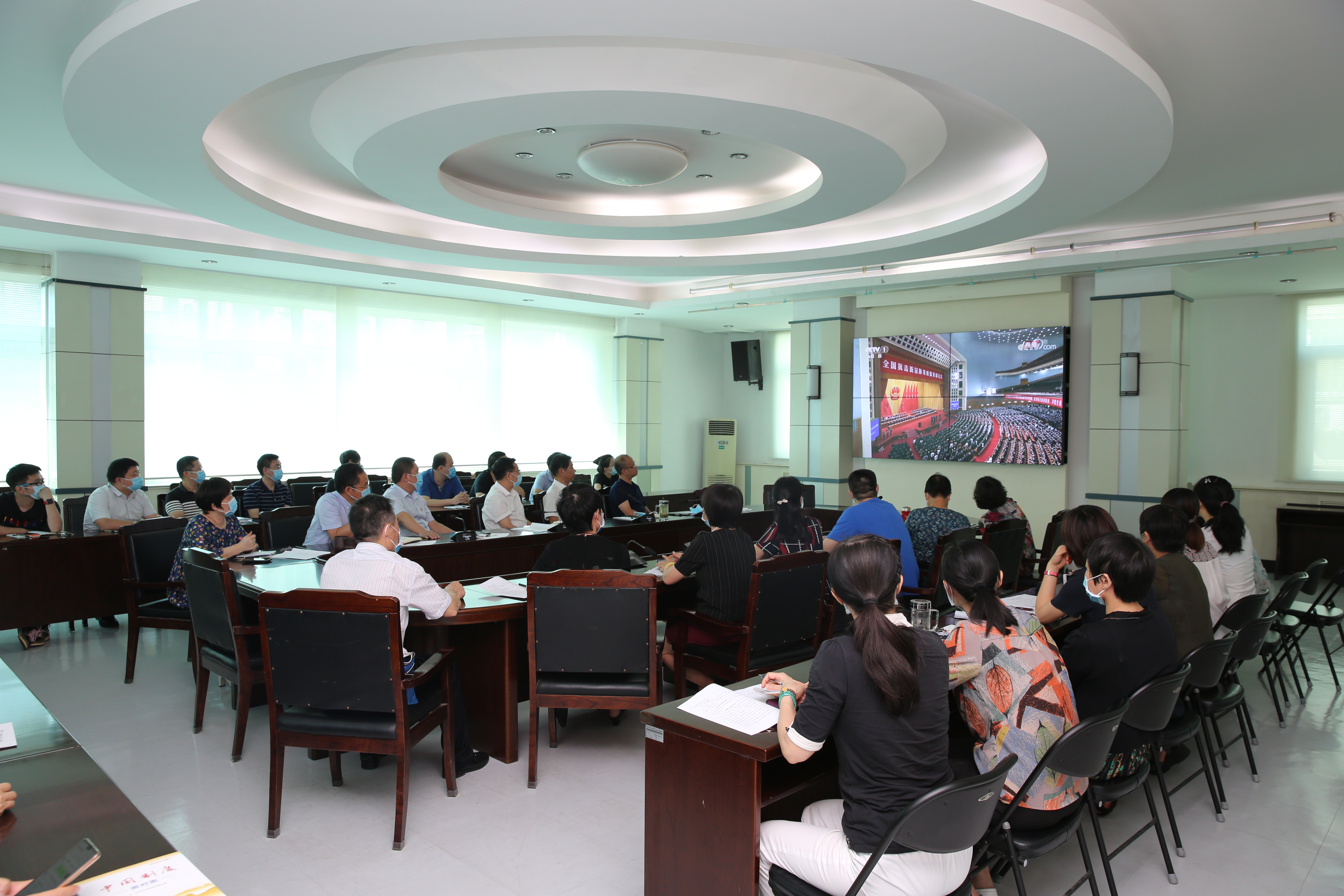 在校校领导、机关党员干部代表观看全国抗击新冠肺炎疫情表彰大会
