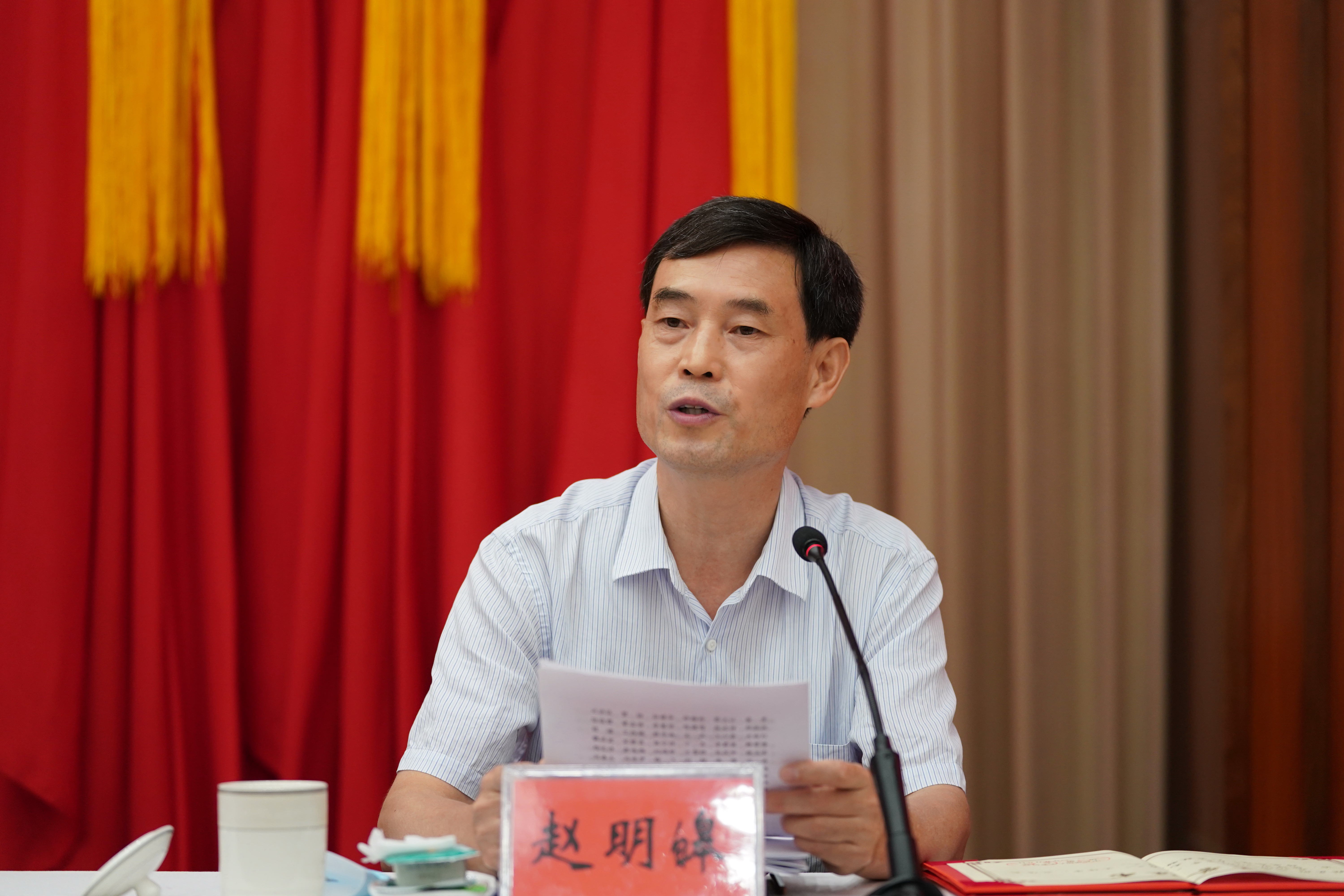 校党委副书记李兴成宣读《关于通报表扬抗击新冠肺炎疫情先进集体和先进个人的决定》《关于通报表扬2019—2020学年获得省部级以上荣誉称号先进集体和先进个人的决定》。