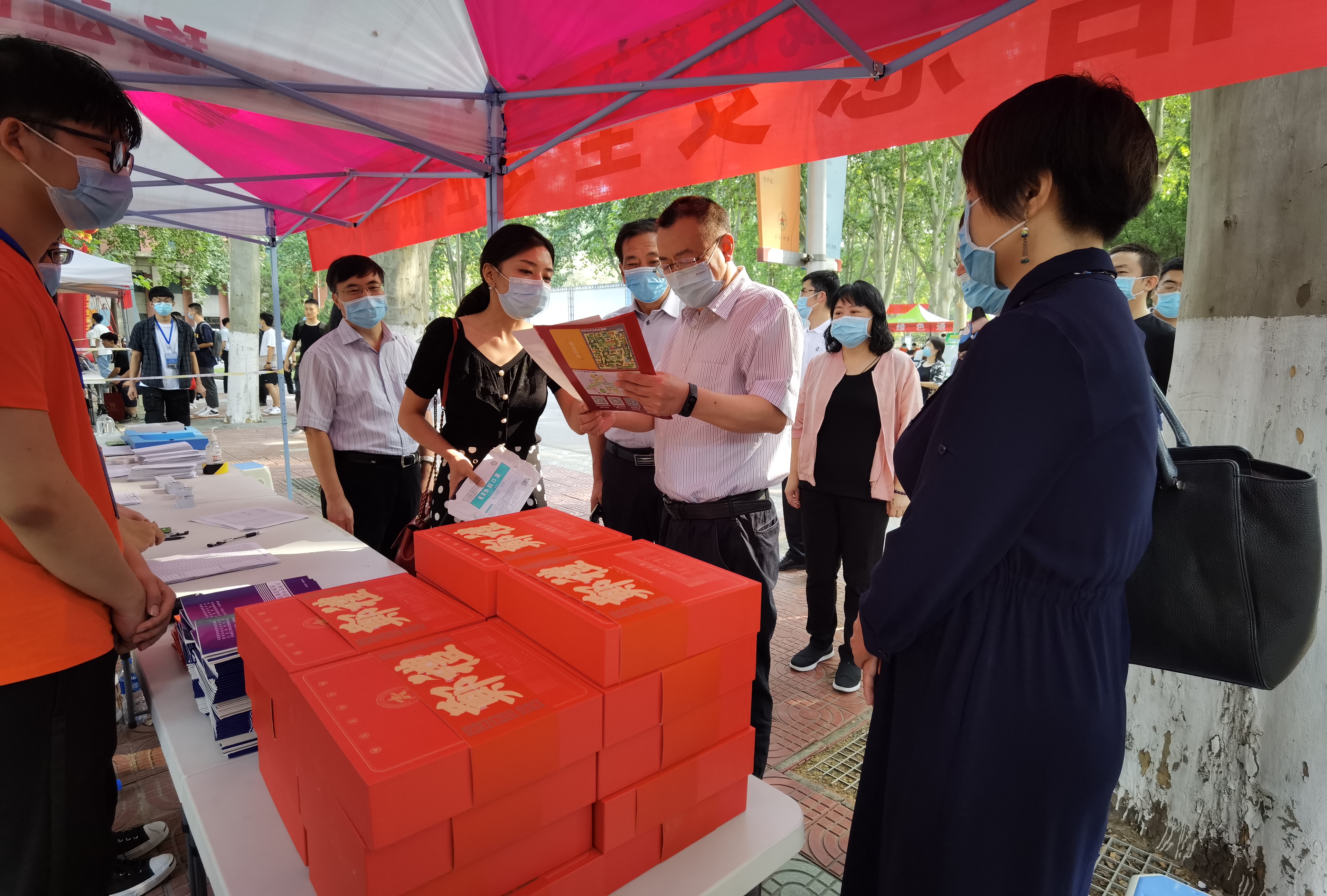 9月12日上午,校领导宋争辉、谷振清、张倩红、关绍康、韩国河、赵明皞带领相关部门负责同志,在主校区检查指导迎新工作,看望2020级新生和家长,并慰问迎新工作人员和学生志愿者。