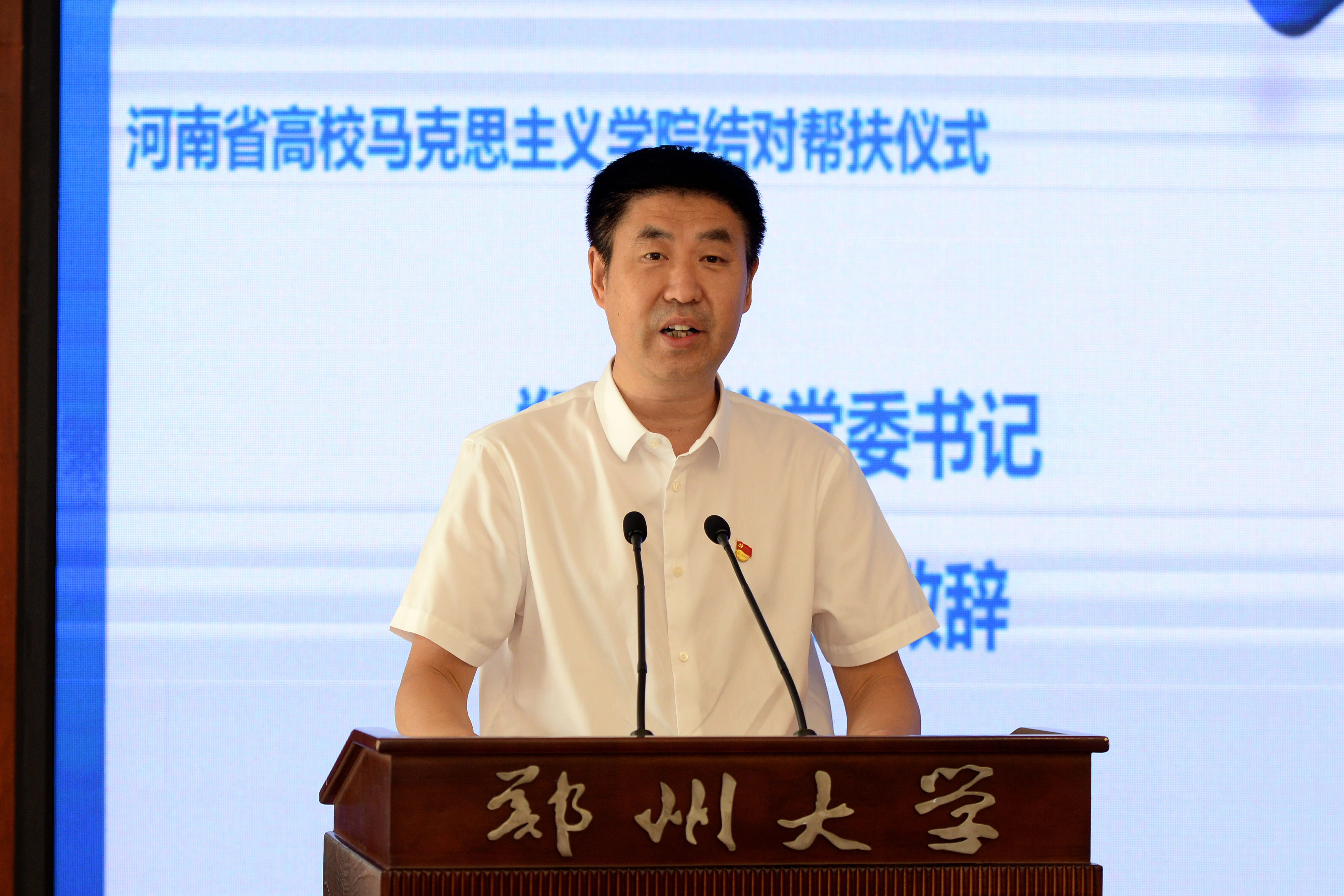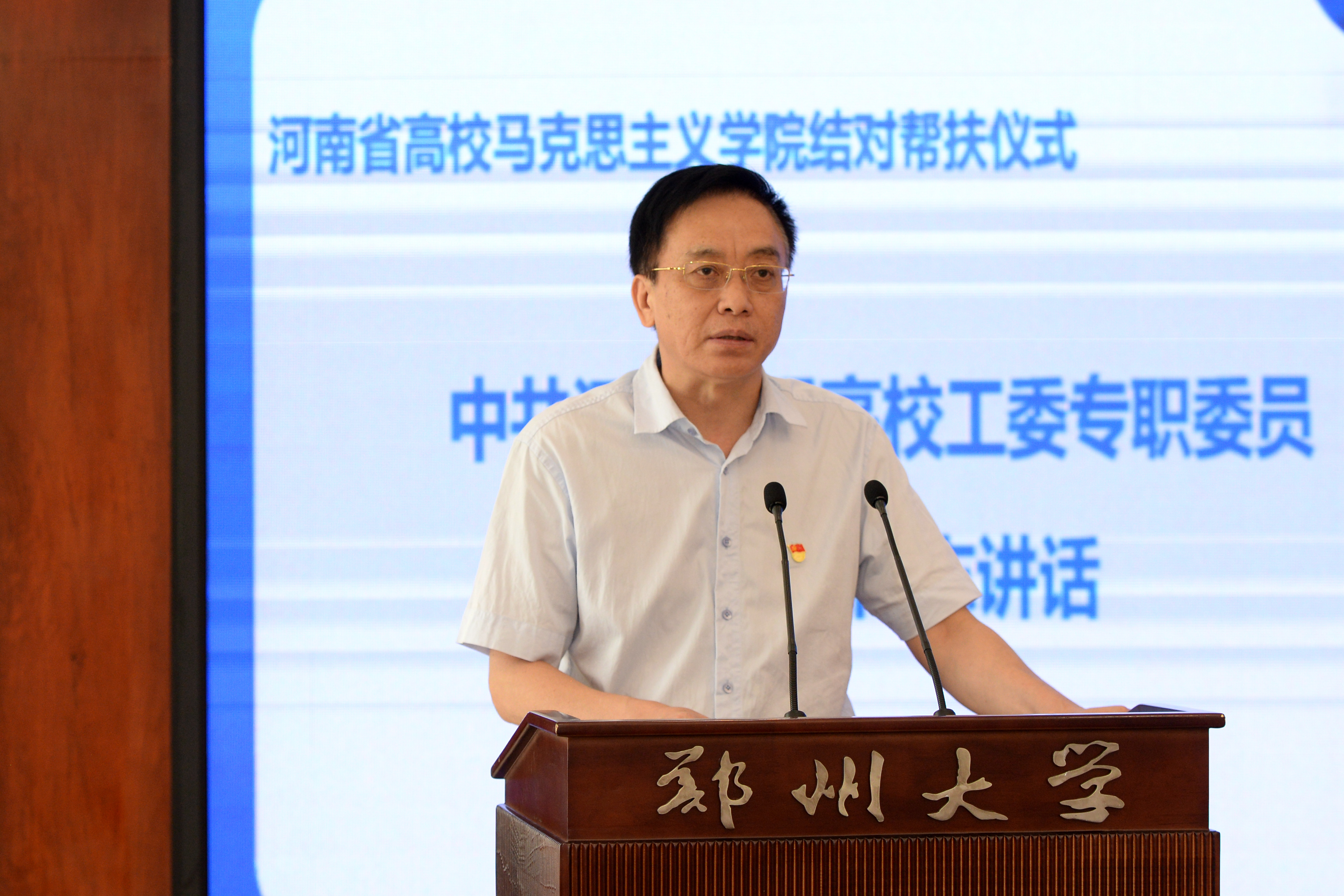 河南省委宣传部理论处处长杨小强宣读结对帮扶文件。30所高校马克思主义学院的代表共同完成了结对帮扶仪式的启动环节。