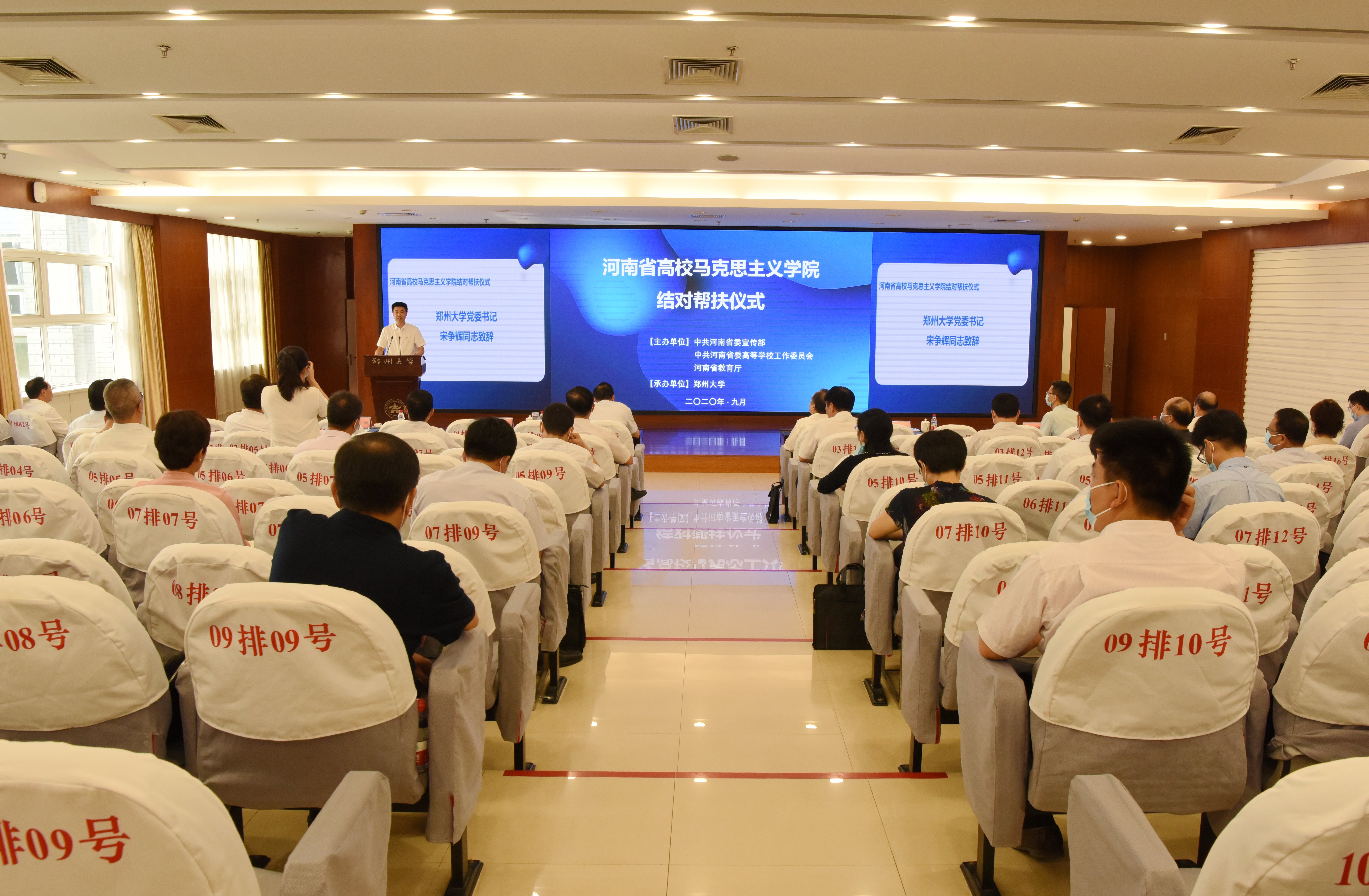 9月18日,由河南省委宣传部、省委高校工委和省教育厅主办,best365英国在线体育官网承办的河南省高校马克思主义学院结对帮扶仪式在best365英国在线体育官网主校区举行。河南省委宣传部副部长尹书博,省委高校工委专职委员何秀敏,best365英国在线体育官网党委书记宋争辉,省委宣传部、省委高校工委、省教育厅相关处室负责同志,全省30所结对帮扶高校马克思主义学院的代表参加了此次仪式。仪式由河南省教育厅思政处处长王继东主持。