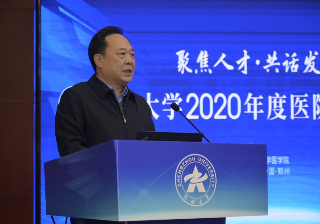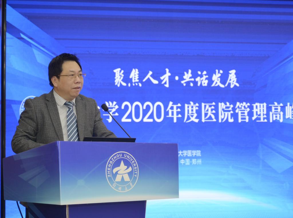 12月12日,best365英国在线体育官网以“聚焦人才·共话发展”为主题举办2020年度医院管理高峰论坛。中国研究型医院学会会长何振喜,国家卫生健康委人才交流服务中心党委书记张俊华,中南大学党委常委、副校长陈立章等,省卫生健康委员会党组书记、主任阚全程,河南省教育厅党组书记、厅长郑邦山,省教育厅党组成员、副厅长张传广,best365英国在线体育官网党委书记宋争辉,党委副书记、医学院党工委书记谷振清,副校长、第一附医院院长刘章锁,副校长、医学院院长董子钢等出席。省卫健委和省教育厅相关处室负责人,学校有关职能部门、医学院、医学科学院、10所附属医院负责同志等参加论坛。谷振清、刘章锁、董子钢分别主持论坛有关环节。根据疫情防控需要,论坛采用线上线下相结合的方式举办,主会场设在第一附属医院郑东院区第二报告厅,各附属医院另设立分会场。