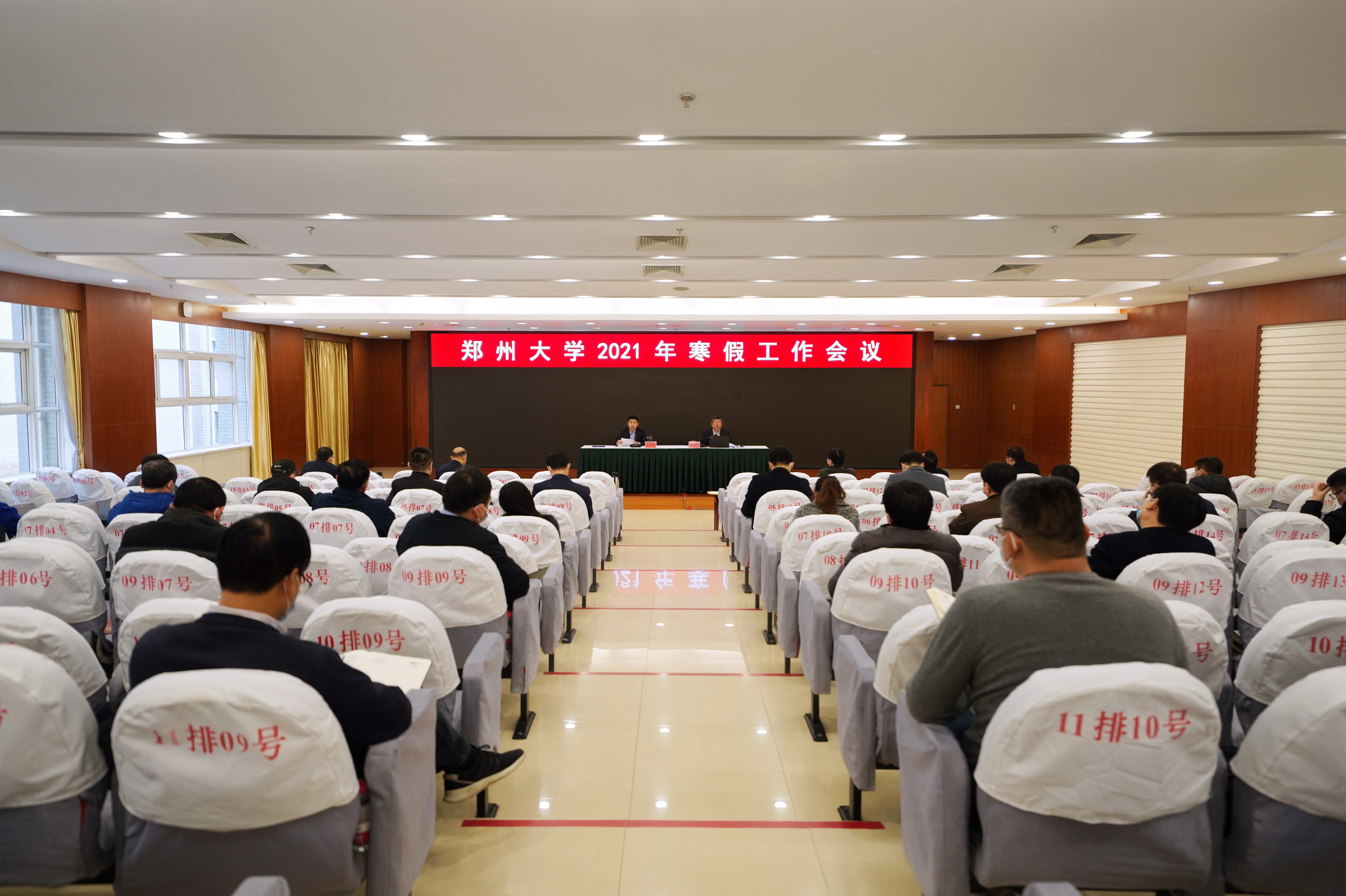 省政协副主席、校长刘炯天以《落实总理指示精神 推进一流大学建设》为题作了讲话。他回顾总结了2020年和“十三五”期间学校工作,对“十四五”学校事业发展提出要求,对寒假重点工作作了安排部署。他指出,过去的一年是极不平凡的一年,学校统筹推进疫情防控和一流建设,党的建设进一步强化,各项事业发展稳步向前。全体郑大人挺起脊梁、求是担当,第一时间启动一级响应,阻击病毒进校园;医务工作者逆行驰援疫区,守住南大门;实现全国最早、规模最大的网上开学,举行两次毕业典礼,化危为机推进治理能力提升;部省合建工作迈上新台阶;学术水平持续攀升,师资队伍不断壮大,人才培养结构和质量进一步优化,开放办学不断扩大,历史文化认同不断增进,在战“疫”大考中交出了合格答卷。他表示,过去的五年,学校一流大学建设成效显著。五年来,学校确立综合性研究型大学定位,开拓形成“一流大学+部省合建”办学格局,深入推进一流建设“三大任务”“三大改革”,构建基于研究型大学的“四大体系”,办学质量与水平、创新与服务能力显著提升,初步形成研究型大学的治理体系,高标准全面完成一流大学建设任务,实现“变轨超车”,取得一系列标志性成果。面向“十四五”和一流大学第二个建设周期,他提出“四个进一步”的总体要求,即进一步凝练特色形成学科制高点,进一步加大人才引进与培养力度,进一步提升承接国家战略的意识与能力,进一步提升治理能力和水平。他代表学校向全体师生员工、离退休老同志和广大校友表示感谢,勉励全校师生要牢记总理嘱托,努力践行“一流大学是用来干的”的庄严承诺,通过布局“新基建”科研平台建设,在更高层面上推动一流建设、开启一流大学建设第二个周期。对于寒假工作,他强调,各部门、各单位要做好应对重大疫情的工作预案,统筹做好常态化疫情防控和假期生活工作;要关心呵护青年学生,做好年度总结考核,谋划好2021年重点工作,持续推进科研项目与奖励申报、博士点申报、学科评估、研究生大会、一流大学评估、人才引进、财务预算等工作,加快科研平台和重点实验室建设,加强后勤保障与服务,稳步推进基础教育建设,安排好各项开学准备,严格工作纪律,守牢安全底线,确保假期安全祥和。