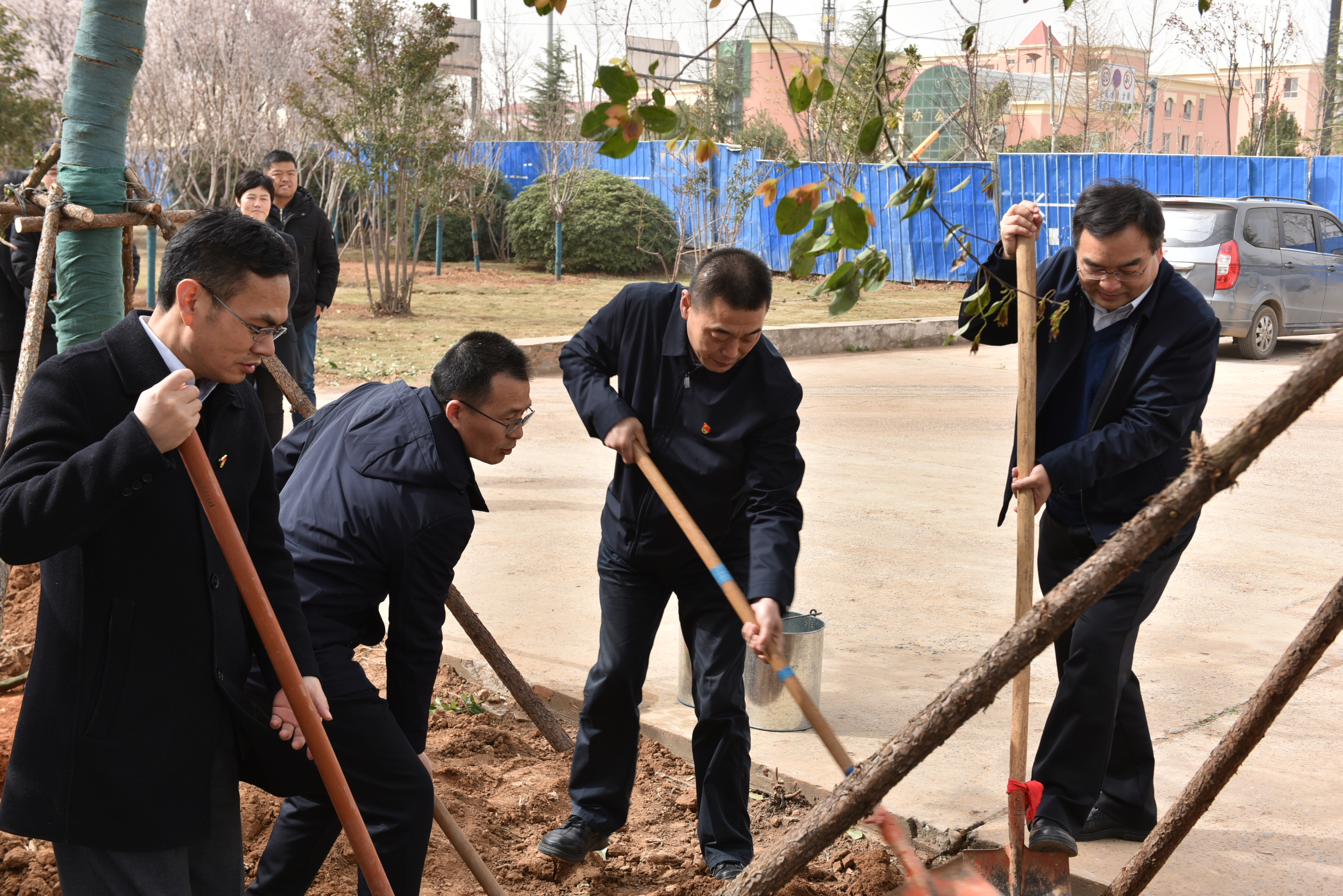 吴宏阳一行在洛阳市人民政府副秘书长李振刊、洛阳市教育局和洛阳城投集团公司负责人的陪同下,查看了过渡校区教学实验楼、学生宿舍、餐厅、教师公寓等楼宇现状和装修改造前期准备情况,并在校区内栽种了香樟树。
