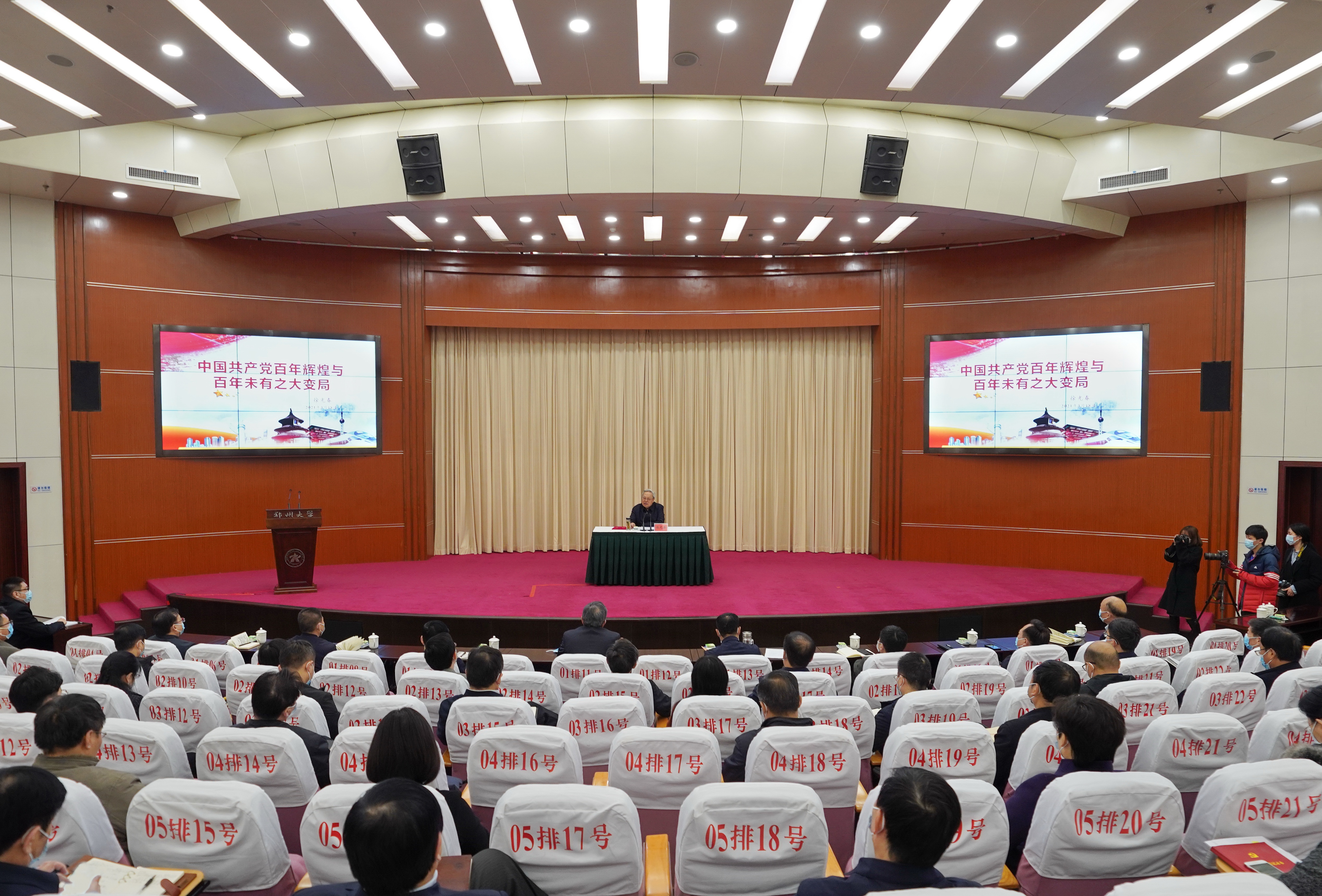 报告会上,徐光春深入总结了中国共产党的百年辉煌业绩,客观分析了百年大变局的由来、表现和影响,深刻阐述了中国共产党百年辉煌业绩为应对百年大变局提供的重要条件。他表示,中国共产党的诞生是“开天辟地的大事变”,深刻改变了中华民族的历史命运,深刻改变了世界发展的趋势和格局,深刻影响了世界社会主义事业发展。他指出,2021年是中国共产党成立100周年,站在世界百年未有之大变局的时代节点,挑战与机遇、风险与冲突并存,只要坚定不移团结在以习近平同志为核心的党中央周围,坚定不移走中国特色社会主义道路,就一定能战胜百年未有大变局的风险和挑战,实现中华民族伟大复兴的中国梦!