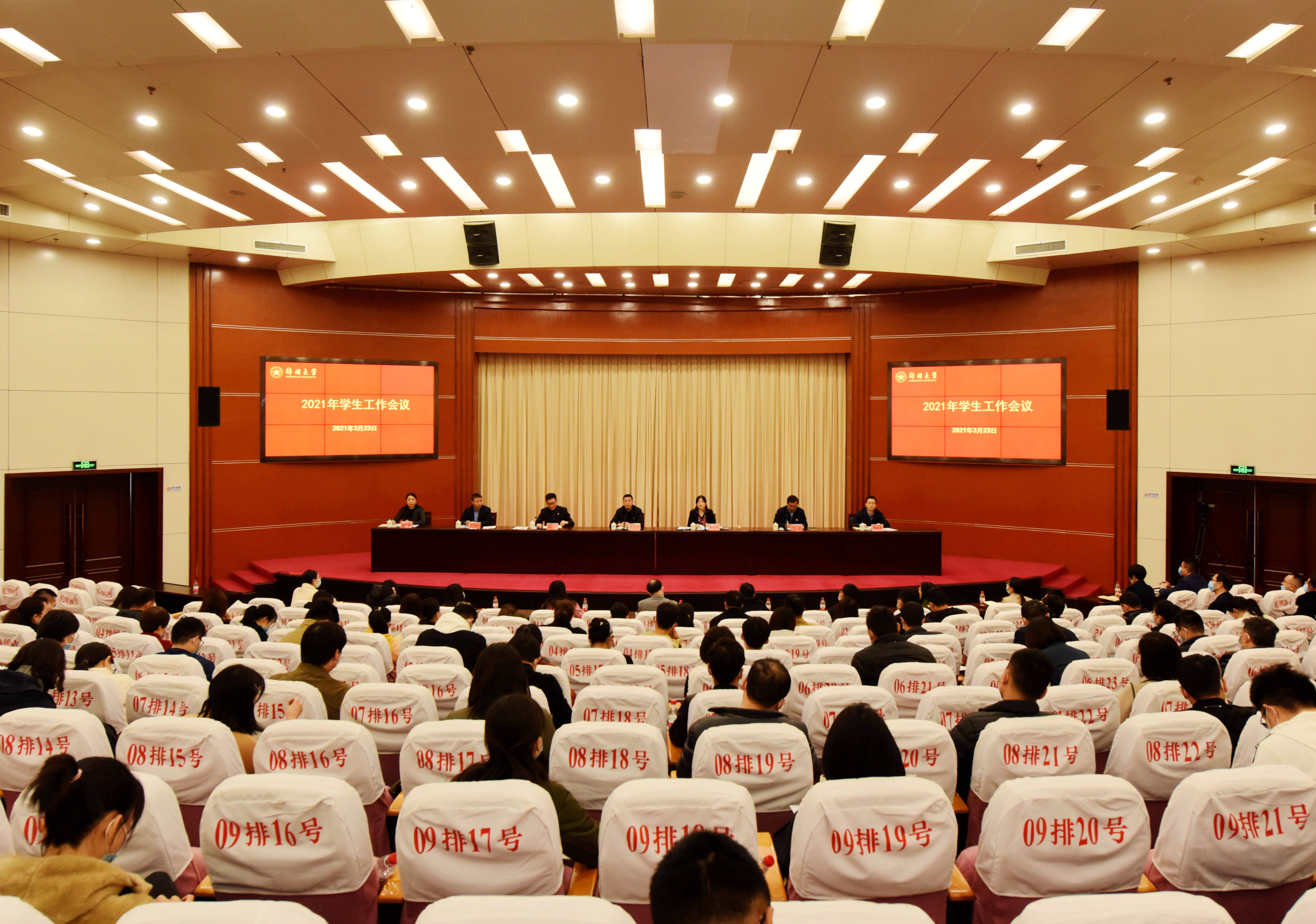 3月23日,学校在主校区综合管理中心第一报告厅,召开2021年学生工作会议。校党委副书记吴宏阳、副校长张倩红出席。校党委常委、党委宣传部部长厉励,学生工作部(处)、校团委、党委研究生工作部、大学生就业创业指导服务中心负责同志,学生工作部(处)全体工作人员,各院(系)主管学生工作的副书记、专职辅导员参加现场会议,兼职辅导员线上观看直播。