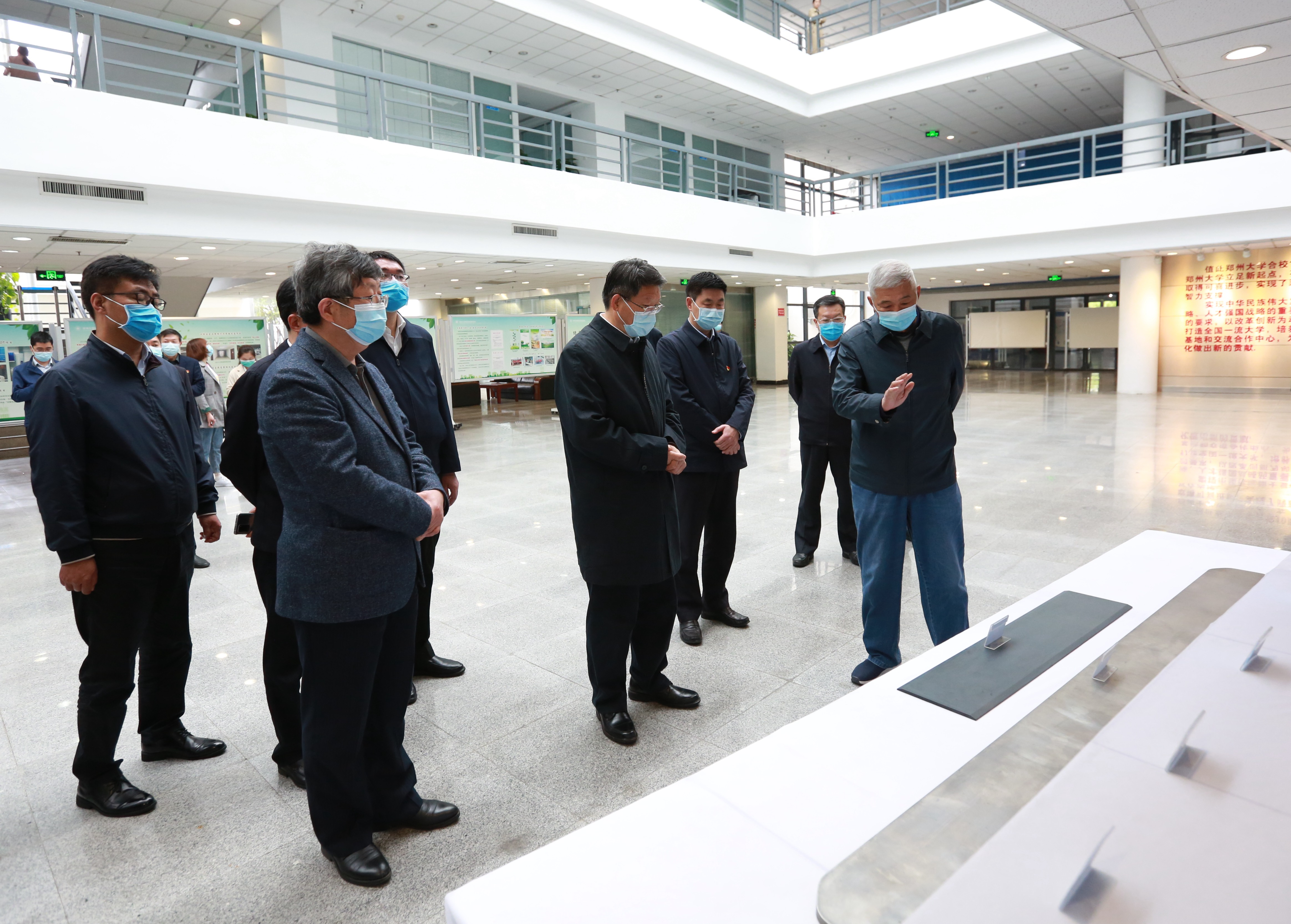 在资源与材料工业技术研究院,刘炯天从学校办学历史、一流建设规划、完成学科布局、深化结构改革、首轮建设成效和未来建设方向等方面介绍了学校一流大学建设情况。随后,李宝荣参观了ITO靶材中试平台,听取何季麟院士关于资源与材料一流学科及靶材中心建设情况汇报,以及相关负责人关于绿色校园建设情况介绍,着重了解资源与材料学科在突破“卡脖子”关键技术、用高分子制品成型与模具服务国家战略、地热能综合利用示范工程的案例。他对学校在人才培养、科学研究、基础建设、管理服务、绿色校园建设等方面取得的成绩表示充分肯定,强调要加强产学研深度融合,建设一流科研平台,打造高水平科研创新团队,促进科技成果转化;要建设高水平师资队伍,培养更多担当民族复兴大任的时代新人;要不断推进学校一流大学建设,提高服务经济社会发展能力,为国家发展提供强大智力和人才支撑,作出郑大贡献。