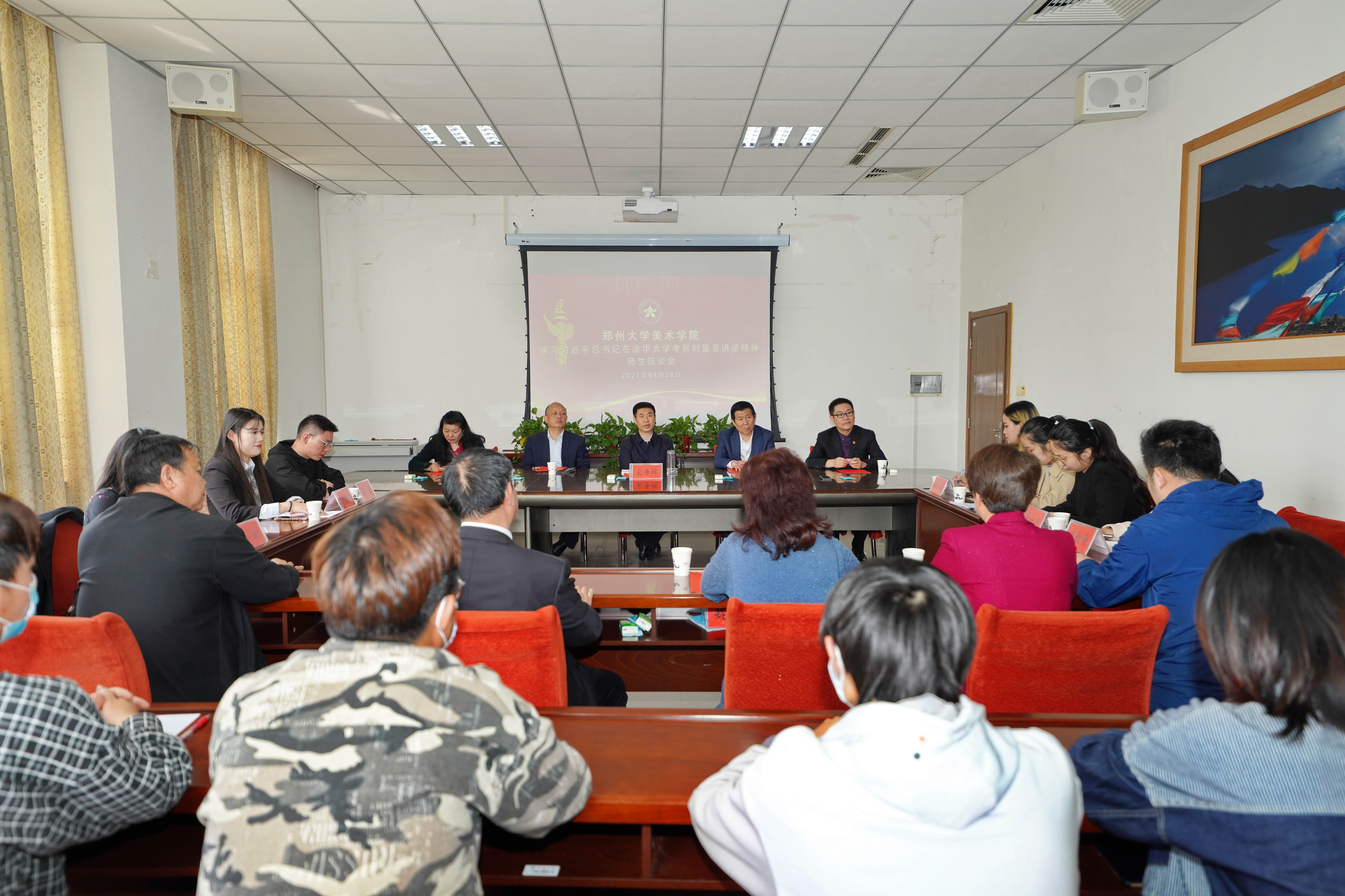 座谈会上,美术学院党委书记朱建良、院长魏小杰,教师代表张宽武、高云、朱铂隆、翟一凡,学生代表苗璐莹、高瑞滢、熊世骄、杨柳飞等分别发言,结合美术教育、科学创新、传承发展、服务区域建设等汇报了学习习近平总书记考察清华大学重要讲话精神的学习体会。