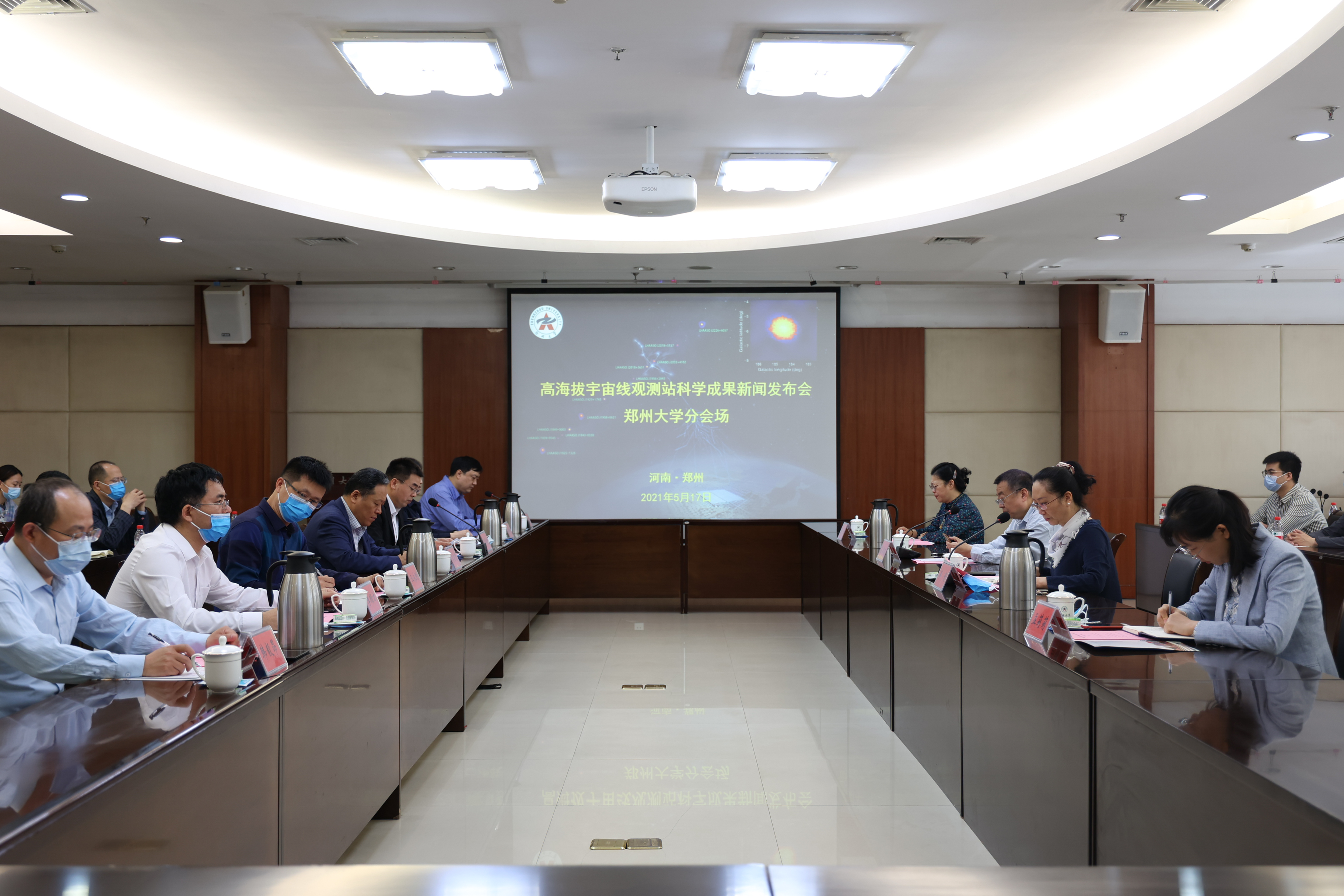 5月17日,由中国科学院高能物理研究所召开的高海拔宇宙线观测站发现首批“拍电子伏加速器”和最高能量光子联合发布会在北京举行。best365英国在线体育官网作为高海拔宇宙线观测站国际合作组成员设立郑州分会场,并举行座谈活动。校党委常委、副校长屈凌波出席,党委宣传部、科学技术处、国际交流与合作处负责同志,物理学院党政班子、师生代表参加活动。