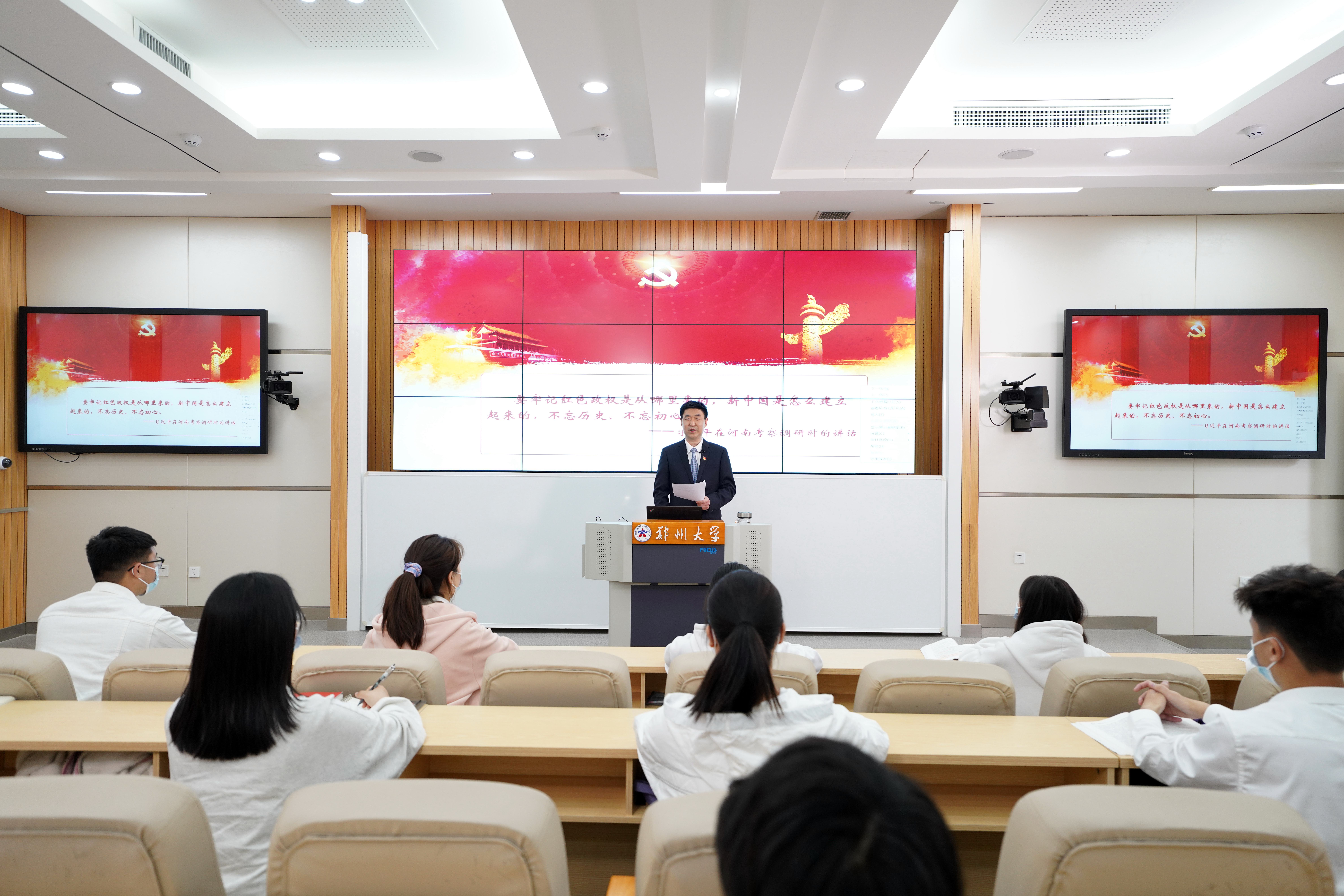 为庆祝中国共产党成立100周年,高质量开展好党史学习教育,引导全校师生学史明理、学史增信、学史崇德、学史力行,5月20日下午,校党委书记宋争辉以《百年大党 人民至上》为题为全校师生上党史大课,best365英国在线体育官网派驻泌阳县闫洼村原第一书记潘华、第一附属医院副院长赵松共同授课。课程以视频在线直播形式进行,全体教职工和全日制本硕博在校学生,分别在教室、报告厅、实验室、宿舍等场所聆听课程。