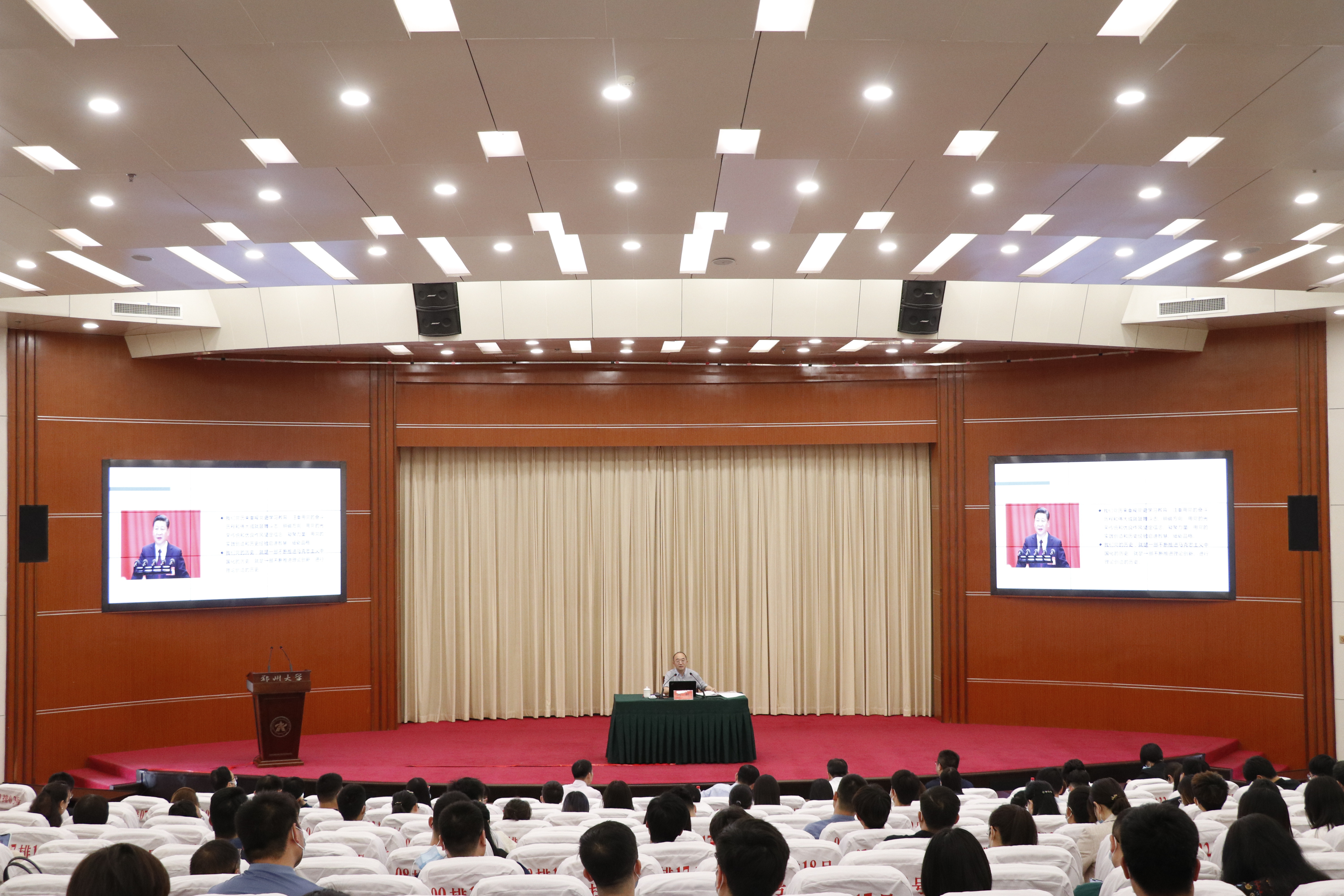 5月18日,冯刚教授在主校区综合管理中心第一报告厅为辅导员作党史学习教育专题报告。学校相关职能部门负责同志、各院系主管学生工作的副书记、全体专职辅导员和部分兼职辅导员200余人参加报告会。报告会由校党委副书记李兴成主持。冯刚教授以《党史学习教育与高校思想政治教育前沿问题》为题作报告。他以党史学习教育与思政教育工作的内在联系为切入点,从“习近平关于高校思想政治教育系列论述”“新时代高校思想政治教育创新发展路径”“立德树人与时代新人培育”“新时代高校思想政治教育质量评价”四个方面,深刻解读了当前思想政治教育工作中的前沿问题。