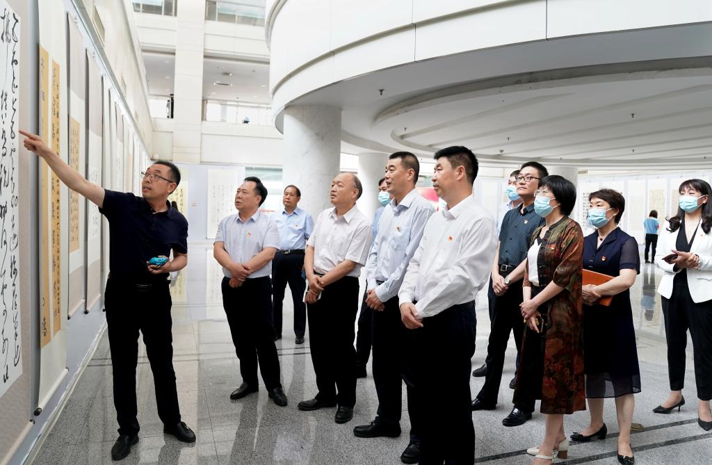 为庆祝中国共产党成立100周年,推动党史学习教育走深走实,6月3日,由best365英国在线体育官网党委党史学习教育领导小组办公室、best365英国在线体育官网党委宣传部、校工会主办,书法学院承办的“百年潮更阔,逐梦新征程”献礼建党100周年师生书法作品展在主校区综合管理中心二楼中庭开幕。校领导宋争辉、谷振清、吴宏阳、许东升,党委常委、宣传部部长厉励,党委常委、统战部部长王莉华以及相关单位负责同志和师生代表参观了作品展。