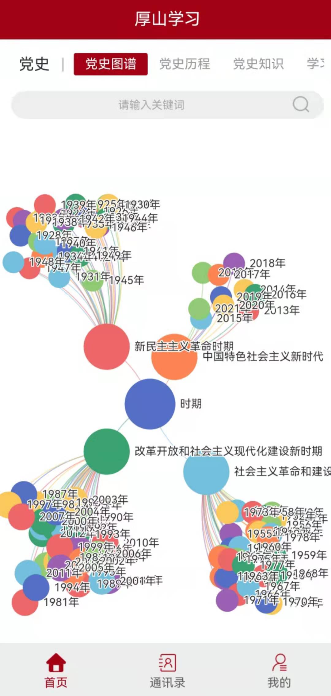 “厚山学习”APP是软件学院学生发挥信息学科专业优势,以构建大数据知识图谱方式打造的党史学习教育平台,包括“党史图谱”“党史历程”“党史知识”“学习动态”四大学习板块,通过对中国共产党百年党史大数据进行统计分析、知识挖掘和分类汇总,最终通过可视化图形绘制的方法,以“一图胜万言”的方式生动展示百年党史的发展脉络、光辉历程、伟大成就,帮助当代青年完成了一场与中国共产党横越百年的心灵对话。“厚山学习”APP同时设置党委、党支部、师生三级管理端口,便于实现全院师生党史学习教育精准化、动态化实时管理。