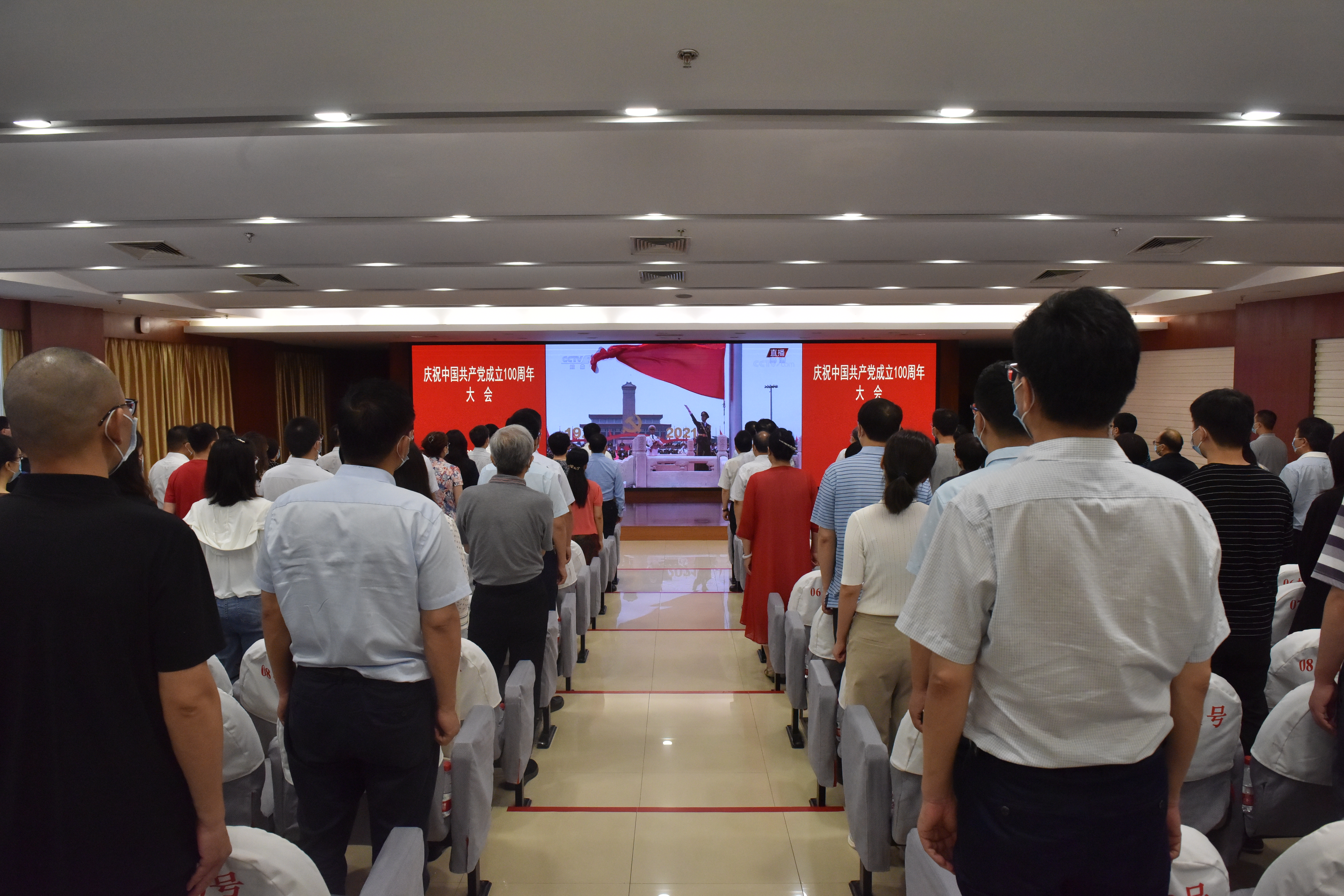 7月1日上午,庆祝中国共产党成立100周年大会在北京隆重举行。中共中央总书记、国家主席、中央军委主席习近平发表重要讲话。best365英国在线体育官网党委高度重视、认真组织,统筹做好安排部署,全体在校校领导、机关干部职工代表在主校区综合管理中心第二报告厅集中观看了大会直播,全校各基层党委、党总支组织师生员工通过电视、网络收看大会直播。
