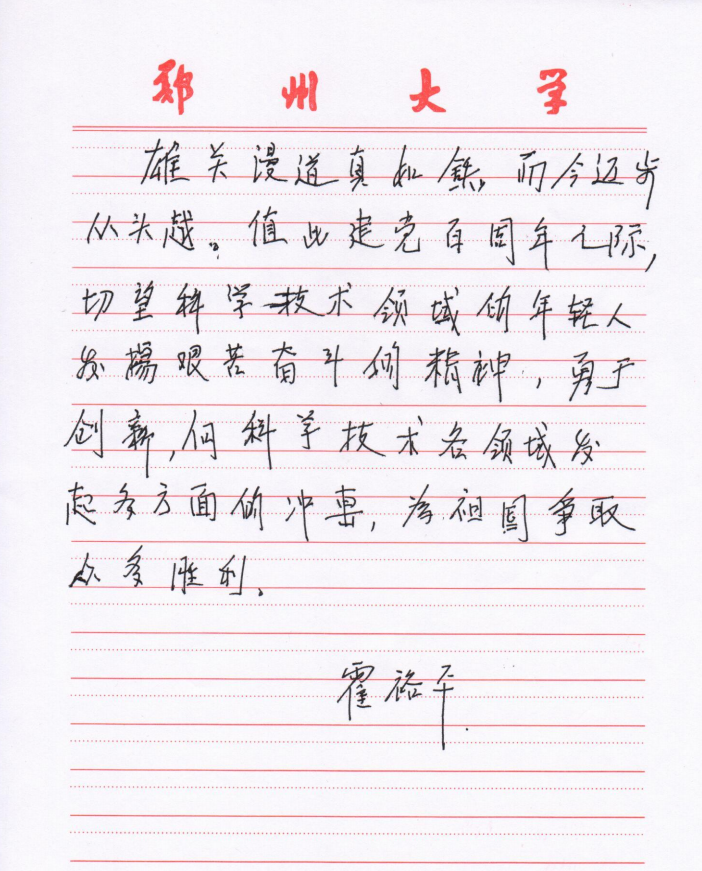 中国科学院院士霍裕平写下的祝福