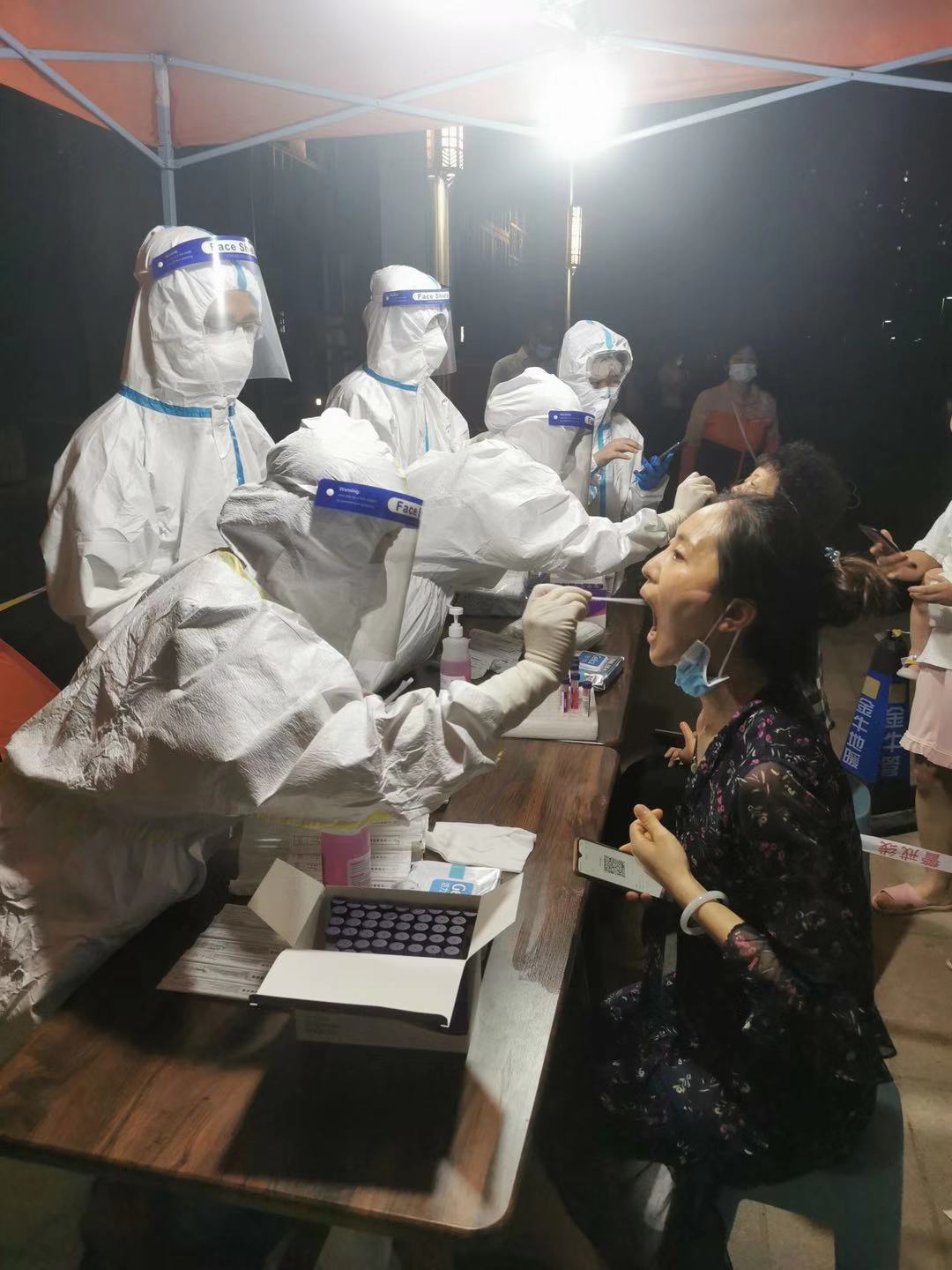 7月31日晚8点,医务人员集结完毕,奔赴全市核酸筛查采样第一线。