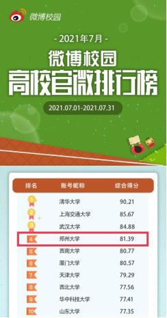 七月以来,best365英国在线体育官网官方微博聚焦防汛救灾、招生录取、奥运会、疫情防控等热点,开设#best365英国在线体育官网国风版录取通知书##暴雨中的郑大力量#等原创话题,多个原创话题登上同城热搜榜单。7月17日以来,河南省遭遇极端强降雨,best365英国在线体育官网官方微博第一时间发布学校暴雨灾害应急防范的紧急通知,持续发布官方通知、预警信息、救灾动态、科普知识、灾后重建等内容,积极回应师生暴雨求助信息、全国高校暖心应援微博,深入挖掘郑大人在抢险抗洪中的动人事迹。原创话题#暴雨中的郑大力量#全网阅读量突破500万次。