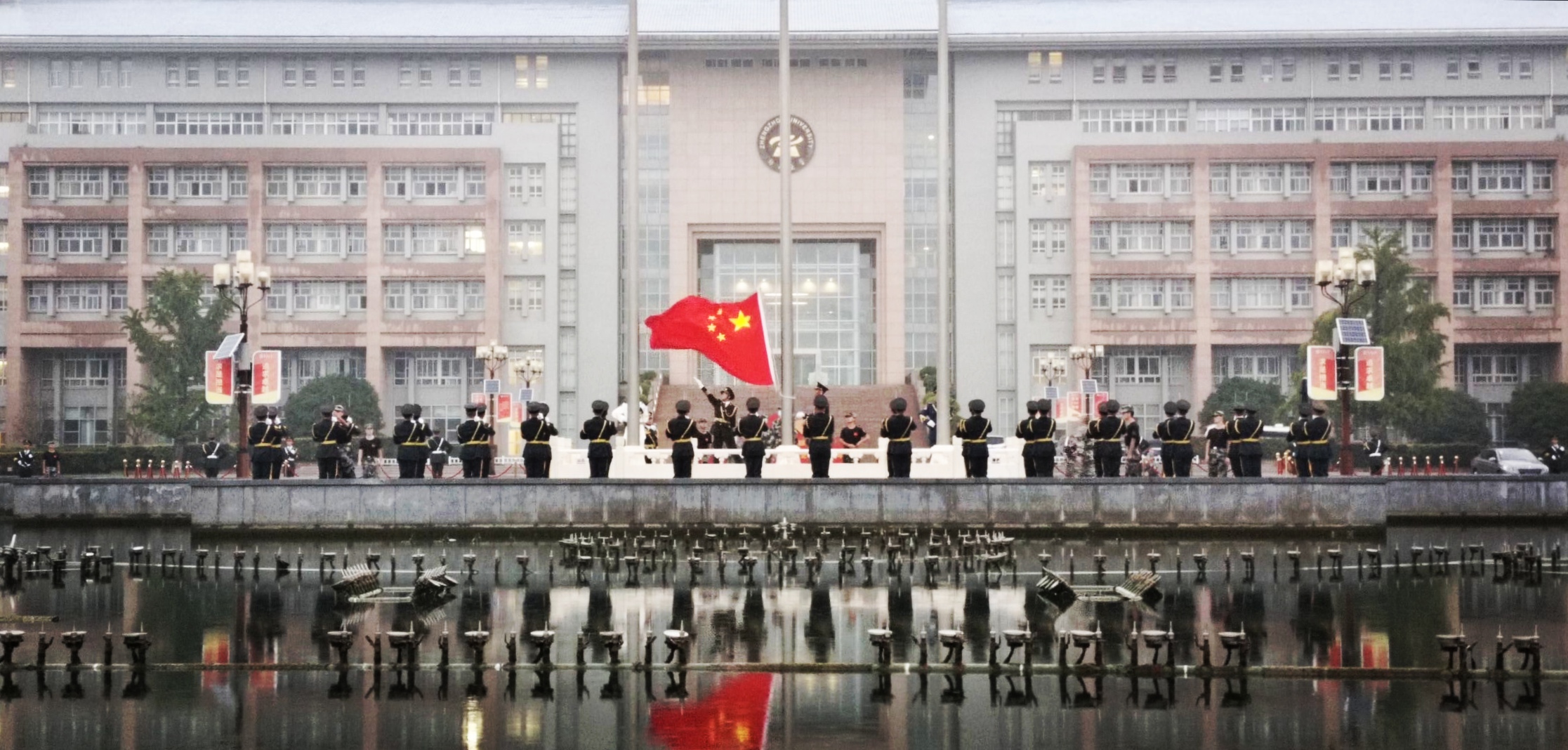 清晨,迎着细雨,主校区五星广场上师生代表早早集合完毕队列整齐,在伟大祖国各地线上观看的学生提前守在电视电脑手机旁做好准备,等待庄严神圣的升国旗仪式到来,全体师生以昂扬的精神面貌迎接新学期,期待开启新的大学生活。6点30分,随着嘹亮的号令响起,升国旗仪式正式开始。国旗护卫队整齐划一、步伐铿锵,护卫着鲜艳的五星红旗入场。伴随着雄壮的国歌,旗手振臂一挥,鲜艳的五星红旗徐徐展开,在师生的注目礼中,迎风飘扬在校园上空。红旗上飘扬着国家尊严,国歌中回荡着爱国激情,best365英国在线体育官网师生线下线上齐声高唱雄壮的国歌,抒发心中的爱国情怀。神圣、庄严的升国旗仪式感染着每一名师生,一颗颗赤诚的心守望着鲜艳的国旗,坚定而执着地表达着对祖国无限的热爱。升国旗仪式结束后,五星广场上深情豪迈地唱响《我和我的祖国》《歌唱祖国》。