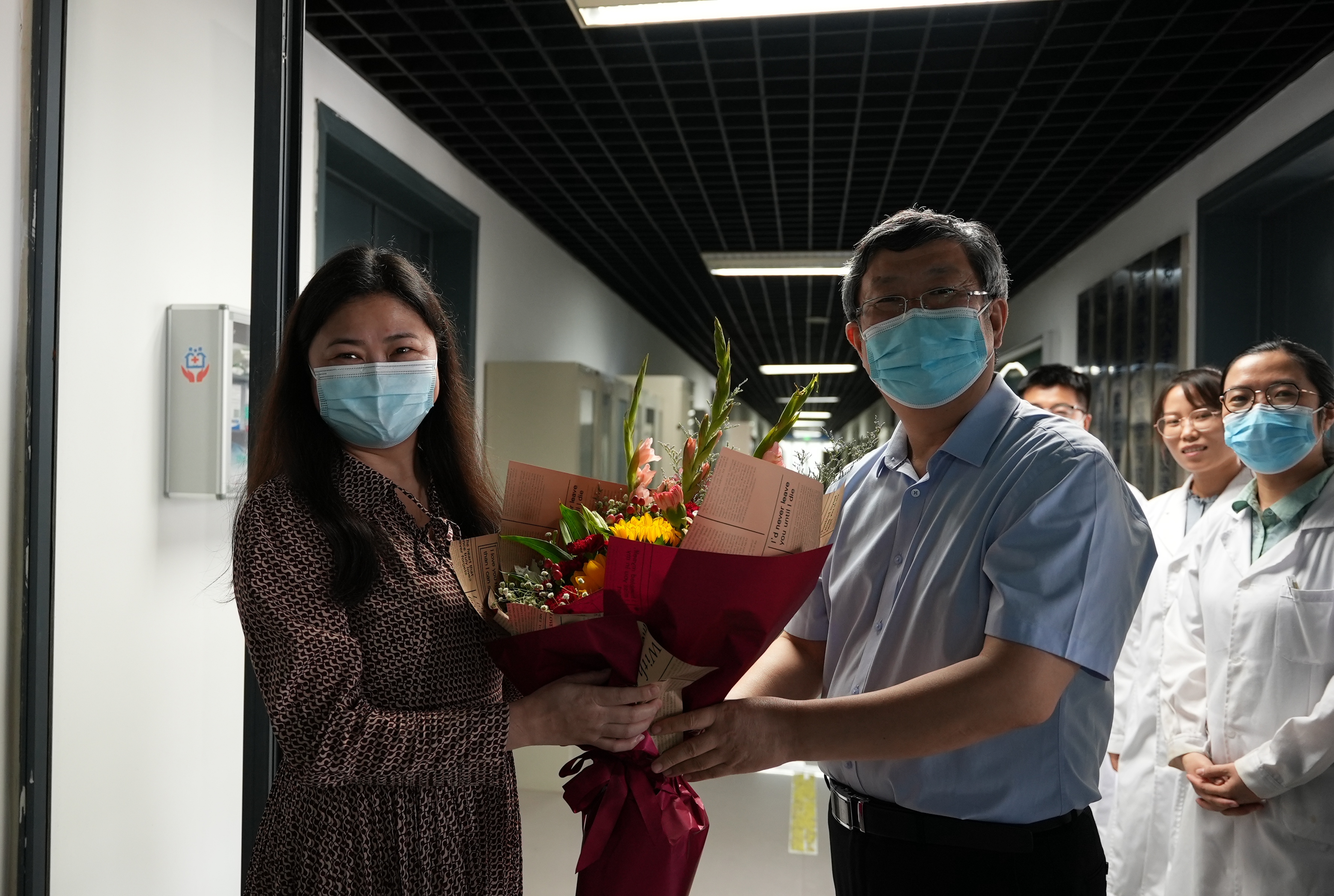 在资源与材料产业协同中心,刘炯天看望慰问王爱萍教授。王爱萍主要从事分子免疫学与免疫学快速检测技术、新型疫苗、重大疫病病源致病机制与免疫调控机理研究,担任河南省免疫生物学重点实验室主任、河南省分子免疫学与抗体工程创新型科技团队负责人、河南省高校分子免疫学与抗体工程科技创新团队负责人。刘炯天关心询问王教授在新型冠状病毒肺炎疫苗研究领域取得重大突破的情况,对研制出3个疫苗抗原均取得良好的免疫保护效果并与中国生物签订战略合作协议给予高度赞扬,指出要进一步加强校企合作,为推动疫苗产业化奠定基础,不断提升我国创新药的研究开发水平,为防控新冠肺炎、打开国门提供技术保障与产品支撑。王爱萍对学校的关心和支持表示感谢,表示将进一步推进产教融合深度协同发展,打造生命科学新高地,为全球抗击疫情作出郑大贡献。
