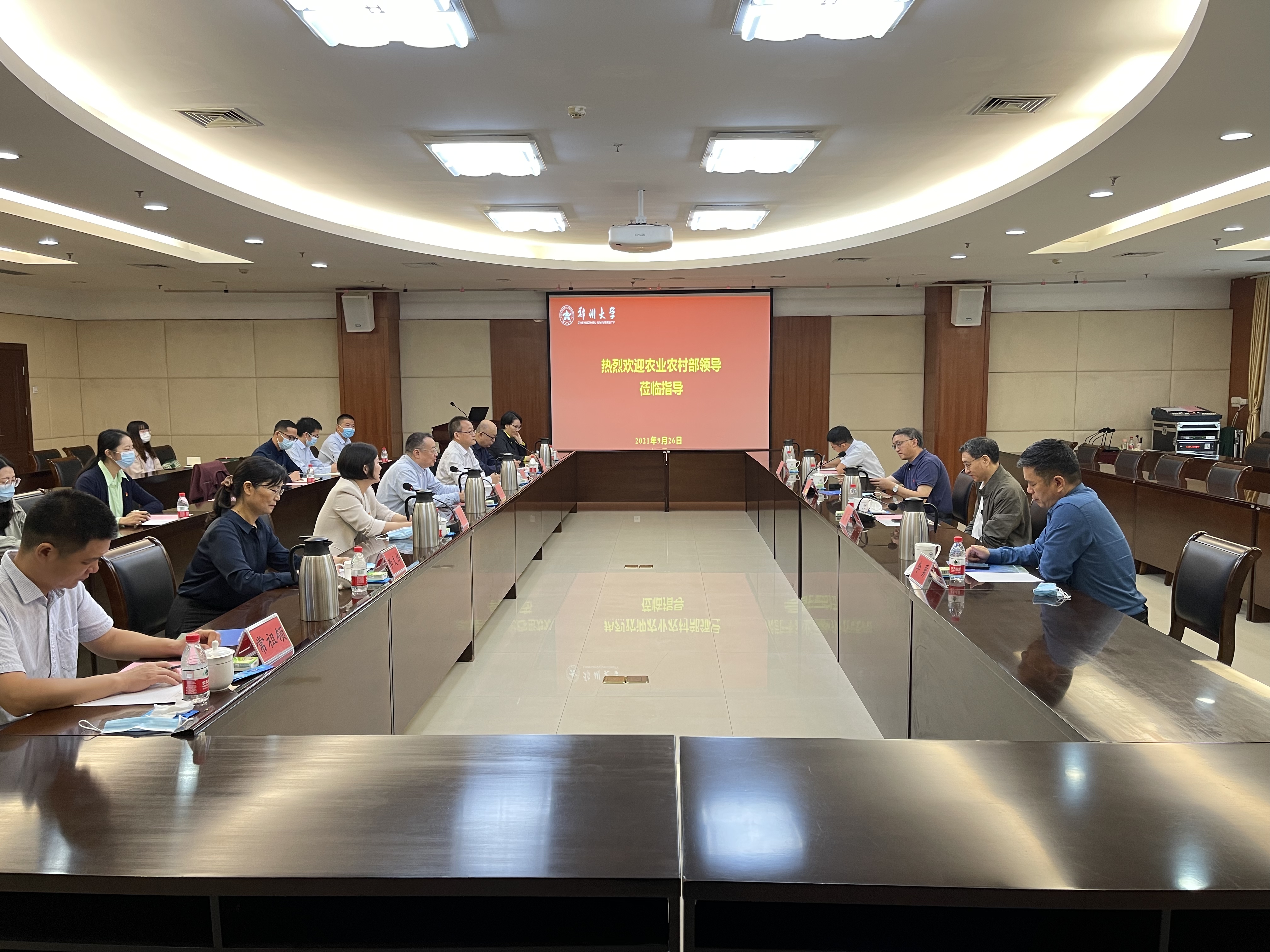 9月26日上午,农业农村部信息中心主任王小兵、省农业农村厅相关负责同志一行来校调研。学校召开座谈会,校党委常委、副校长屈凌波出席,科技处及数学与统计学院负责同志及教师代表参加座谈。