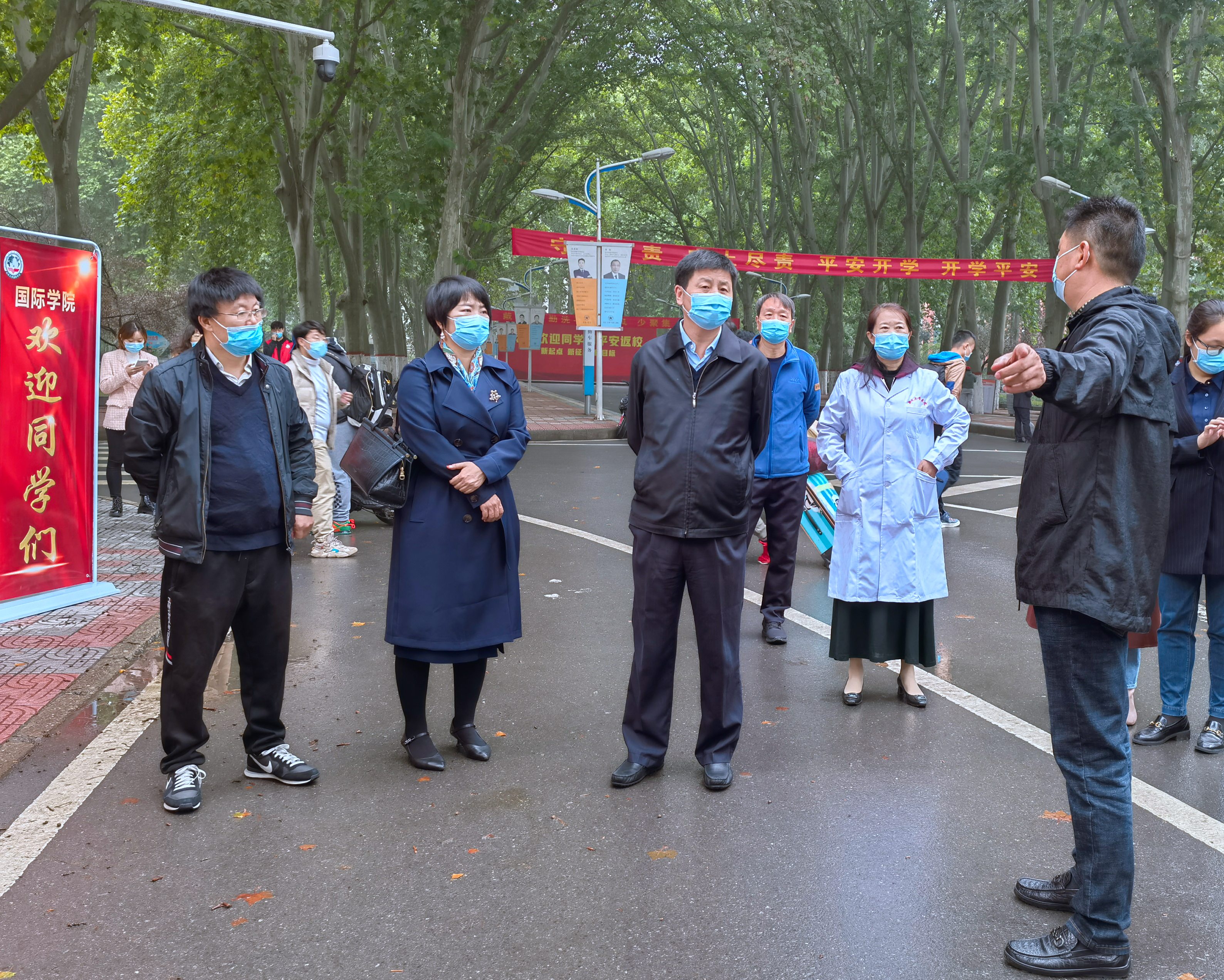 为统筹做好常态化疫情防控和返校复学工作,落实落细防控措施,学生返校前夕,校领导王宗敏、吴宏阳、张倩红到各校区实地检查指导各项准备工作,确保学生返校复学顺畅高效。学校高度重视秋季开学和疫情防控工作,根据上级文件精神,各工作专班结合实际制定秋季学期学生分批返校工作方案,完善“一校一院”工作机制和返校报到流程,组织秋季开学疫情防控应急演练,开展全方位、全覆盖、无死角的校园消杀,按照“市批省备案”的程序,积极与省市及属地主管部门沟通,形成《工作方案》,组织迎接四个校区的郑州市各区的综合验收,是第一家完成审批的驻郑高校。