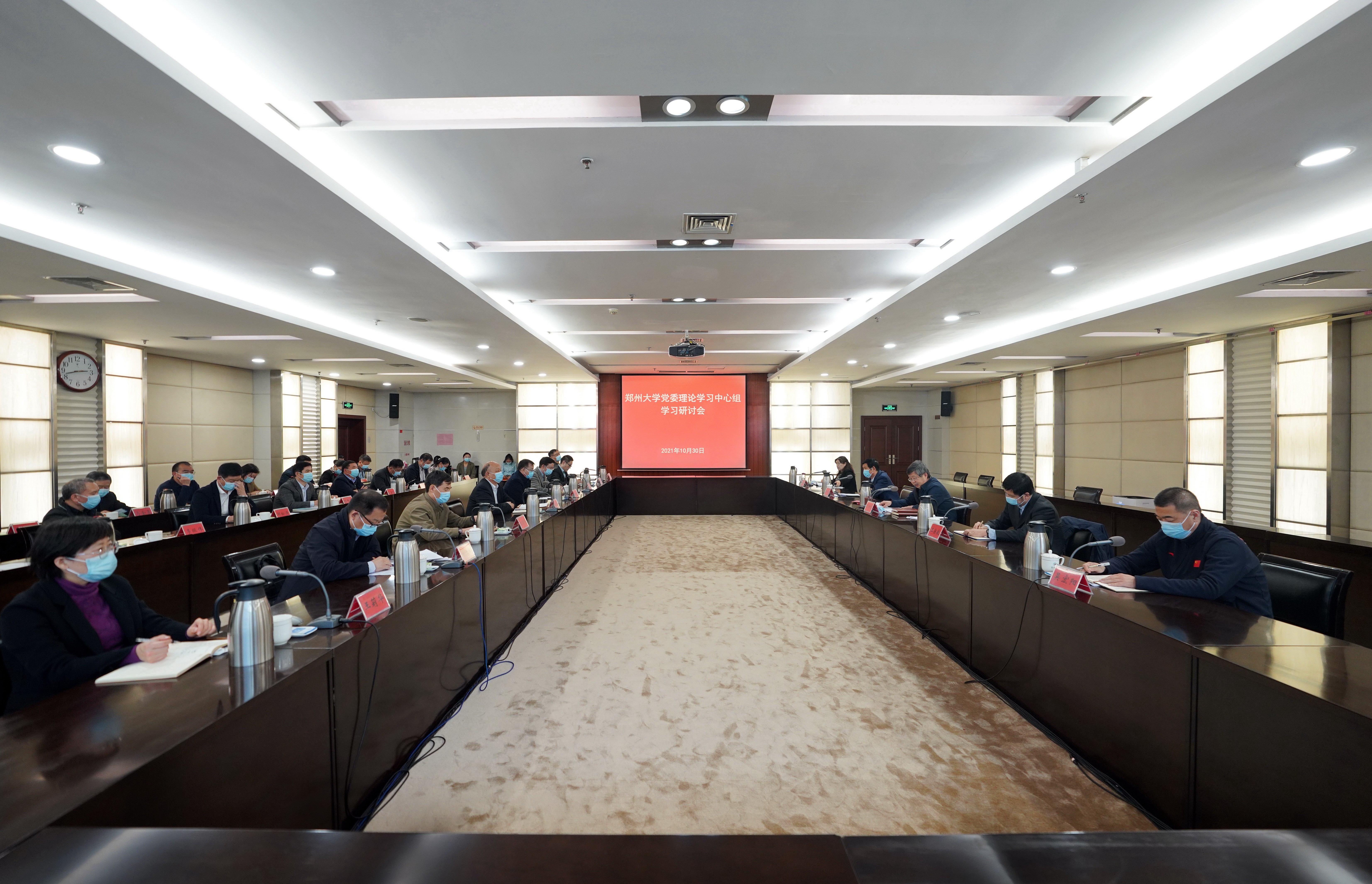 10月30日下午,省政协副主席、校党委书记、校长刘炯天主持召开校党委理论学习中心组专题学习研讨会,传达学习中国共产党河南省第十一次代表大会精神,并就贯彻落实好党代会精神进行安排部署。全体在校校领导,校党委理论学习中心组成员参加会议。