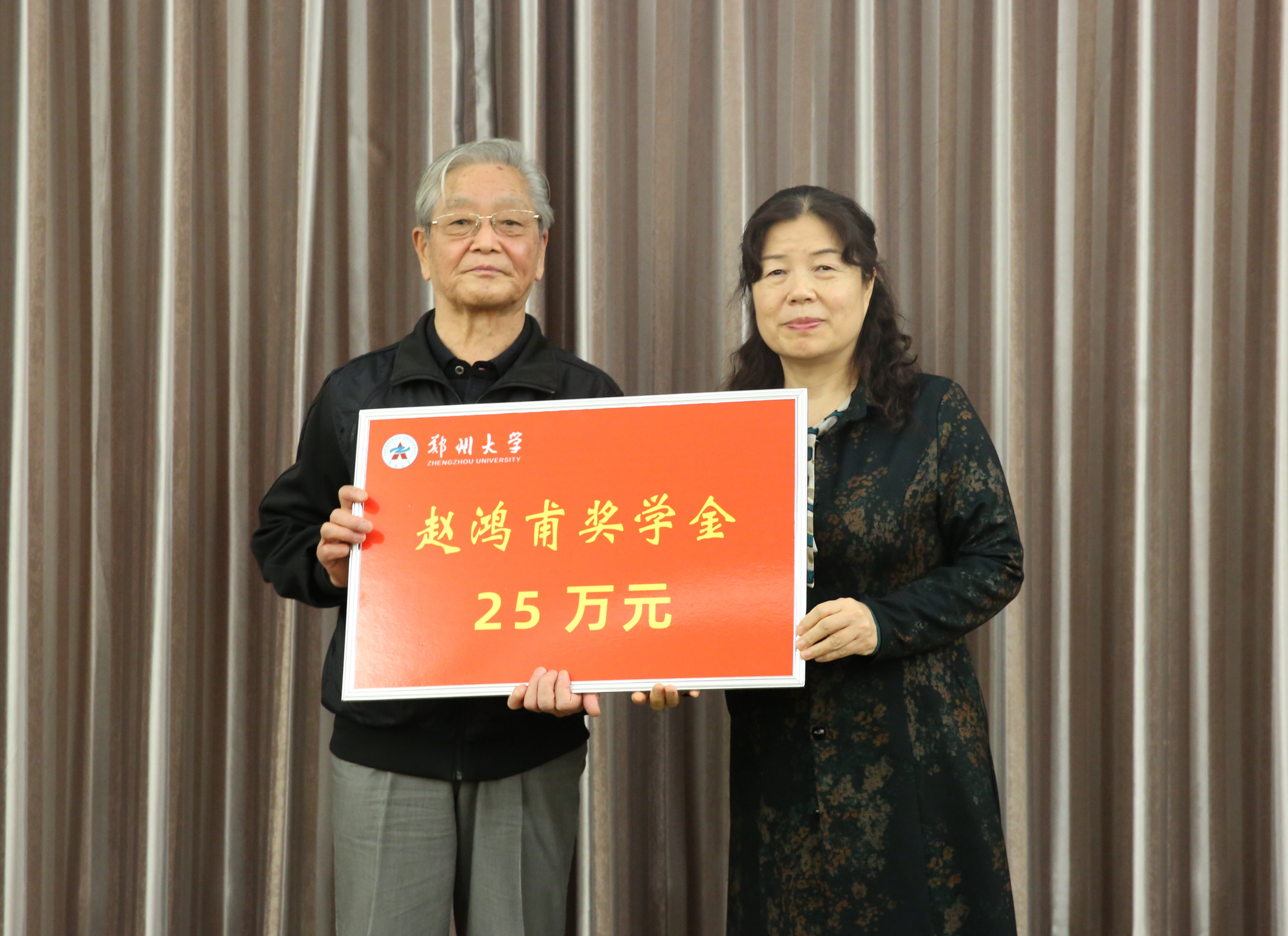 赵鸿甫老师于1982年在best365英国在线体育官网建筑学院(原郑州工学院土木建筑系)任教,1996年退休,曾荣获“全国优秀教师”称号。退休后,赵老师始终关注着母校发展,此次捐出个人积蓄25万元设立奖学金,旨在鼓励建筑学院学生专注学业、精进技艺,助力培养国际化复合型设计人才。
