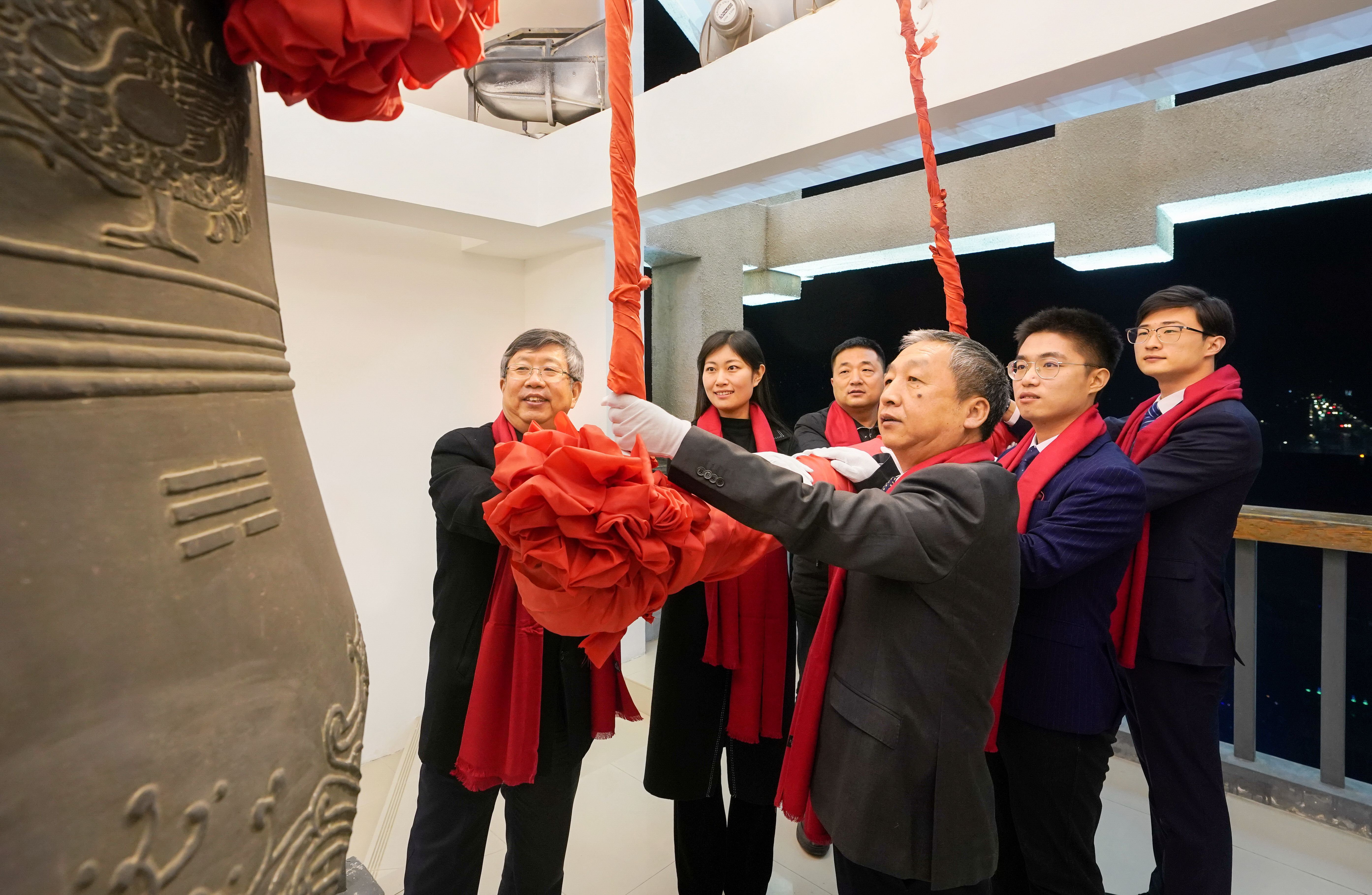 省政协副主席、校党委书记、校长刘炯天与师生员工代表敲响新年钟声
