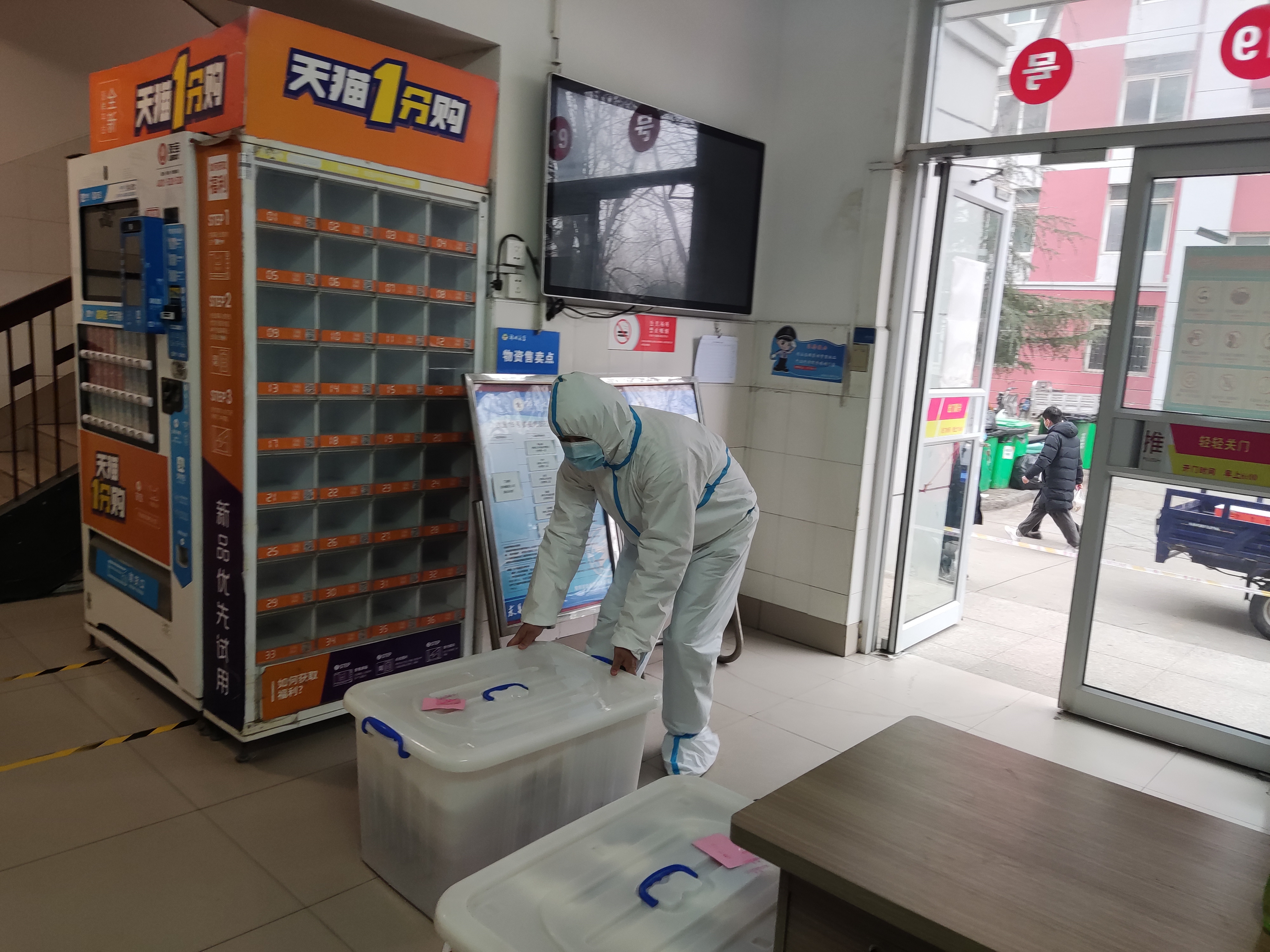 1月9日凌晨4点半左右,柳园学生公寓负责人刘征也接到电话,在他的带领下,副经理陈鑫,管理员曹金鑫等人仅用3分钟就到达现场。此时,柳园19号楼仅有值班员李艳丽在岗,管理员曹金鑫义无反顾进入楼内和值班员上双岗。接到封楼通知后,大家考虑到需要高频次的消杀工作,为了加强楼内保障,保洁员黑艳芳、方青霞、郭世曾、崔华、陈瑞连不顾危险、主动请缨进入“战场”。7名工作人员组成了管理、值班、保洁、消杀全方位保障体系。曹金鑫的孩子刚3岁,爱人怀孕在家自己照看孩子,但当学校需要时,曹金鑫以单位工作为重,主动要求封闭在校内,遇到封楼紧急情况时更是模范带头,冲锋在前。直到1月11日中午,曹金鑫才将自己主动要求封控在楼内的消息告诉家人。