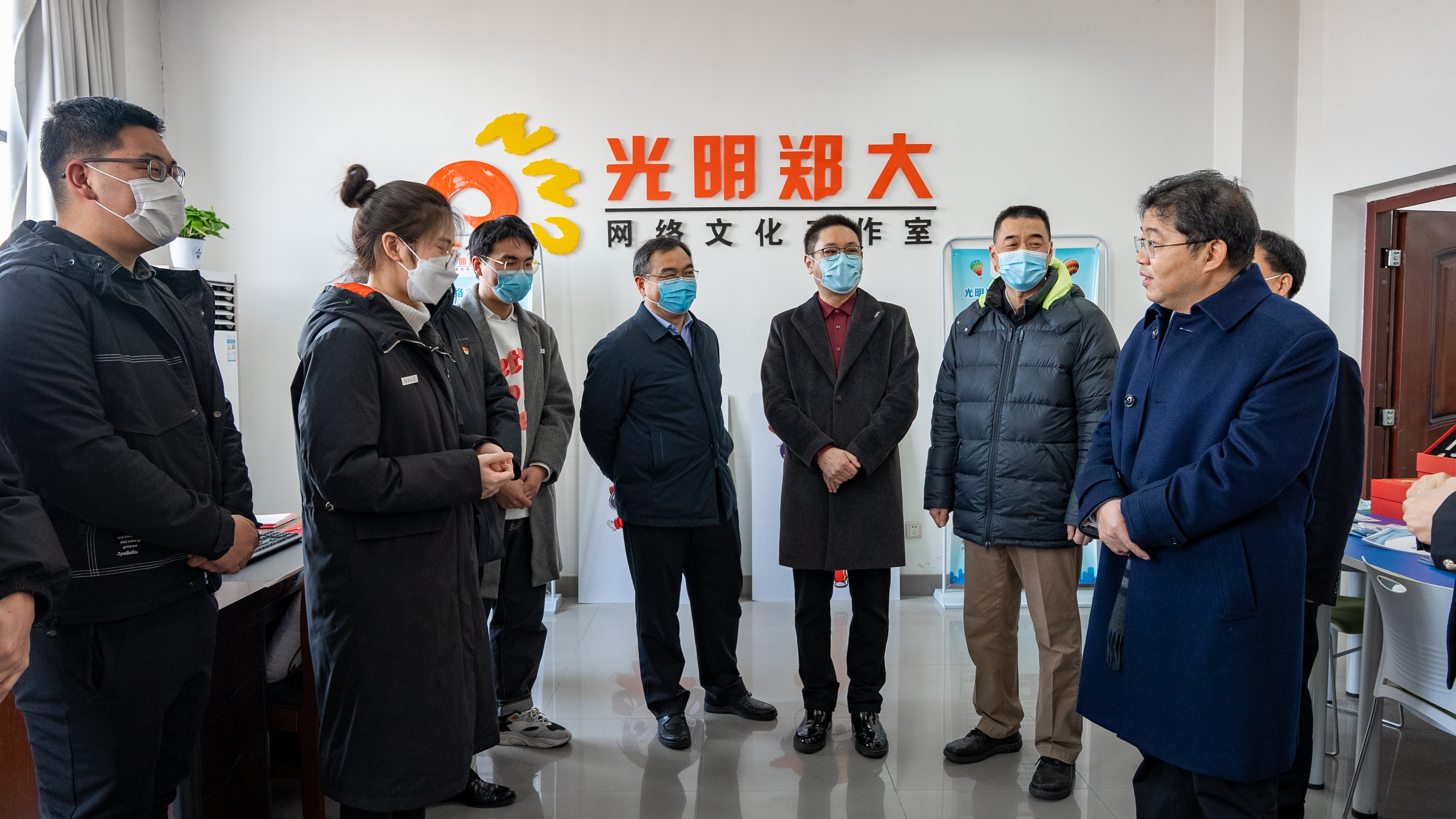 张文斌一行在“光明郑大”网络文化工作室调研