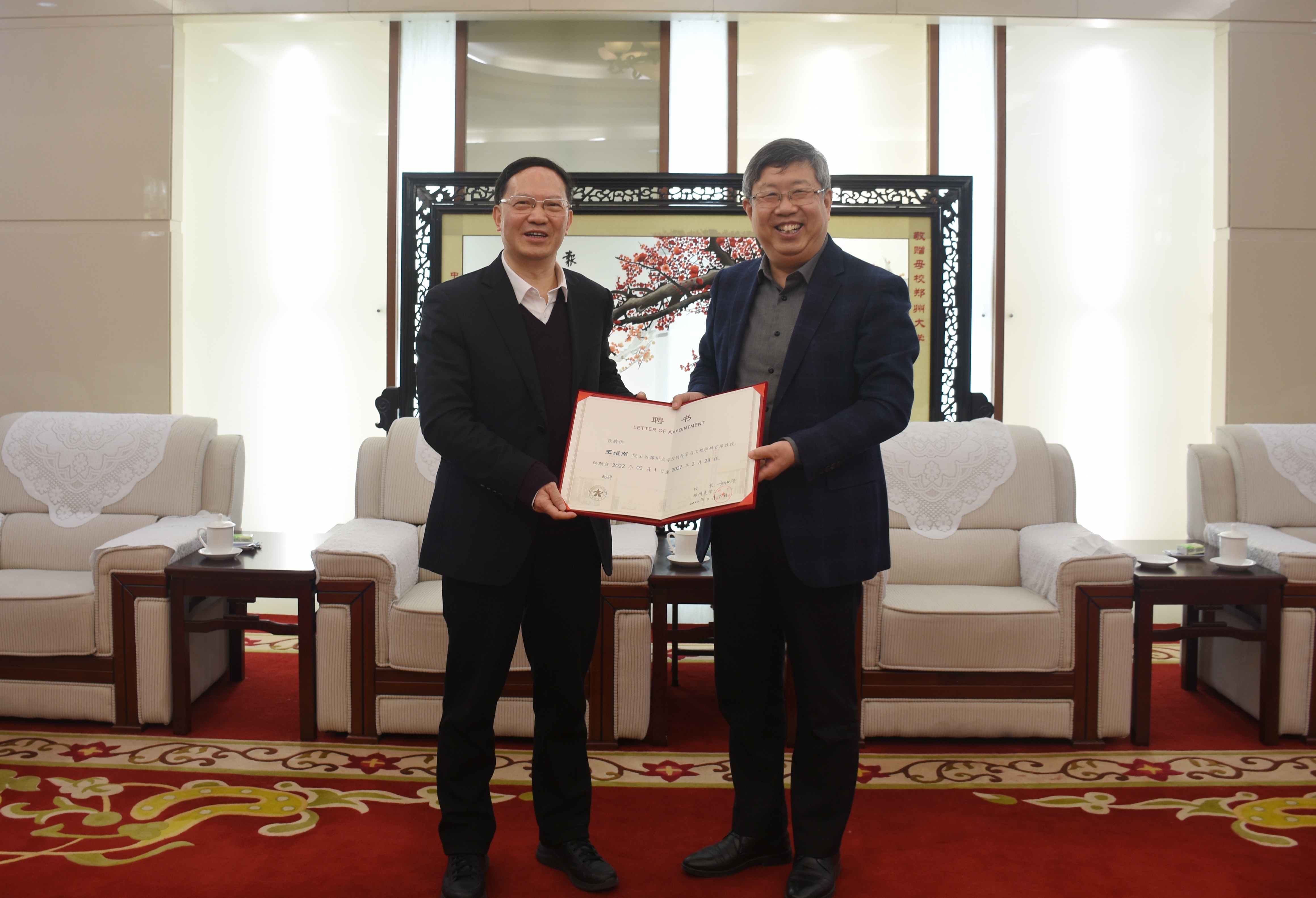 省政协副主席、best365英国在线体育官网党委书记、校长刘炯天为王耀南院士颁发聘书