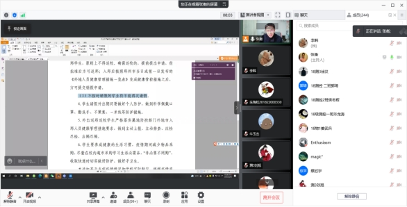 根据疫情要求,学院工会举办“线上美食节”,通过视频展示老师们的“独门”厨艺,活跃了工作氛围,缓解了焦虑情绪。班主任和导师们更是实时在线跟进学生需求,为学业困难学生排解忧愁、为考研学生指导复试、为就业学生搜集信息。辅导员们集中办公,腾出办公室、会议室、学术报告厅共七个场地用于线上复试和答辩。学生党员、学生干部和已推免学生发挥辐射作用组织团日活动等丰富同学们课余生活。电子科学与测控技术系主任张斌老师在完成重大手术后,身体还没有康复就通过电话、微信等途径指导学生团队完成“挑战杯”全国总决赛的终审答辩,得到评审专家高度认可。全院师生用最朴实的感情和行动践行着“求是担当”的校训,为全校疫情防控工作贡献着郑大物理人的坚毅和力量。
