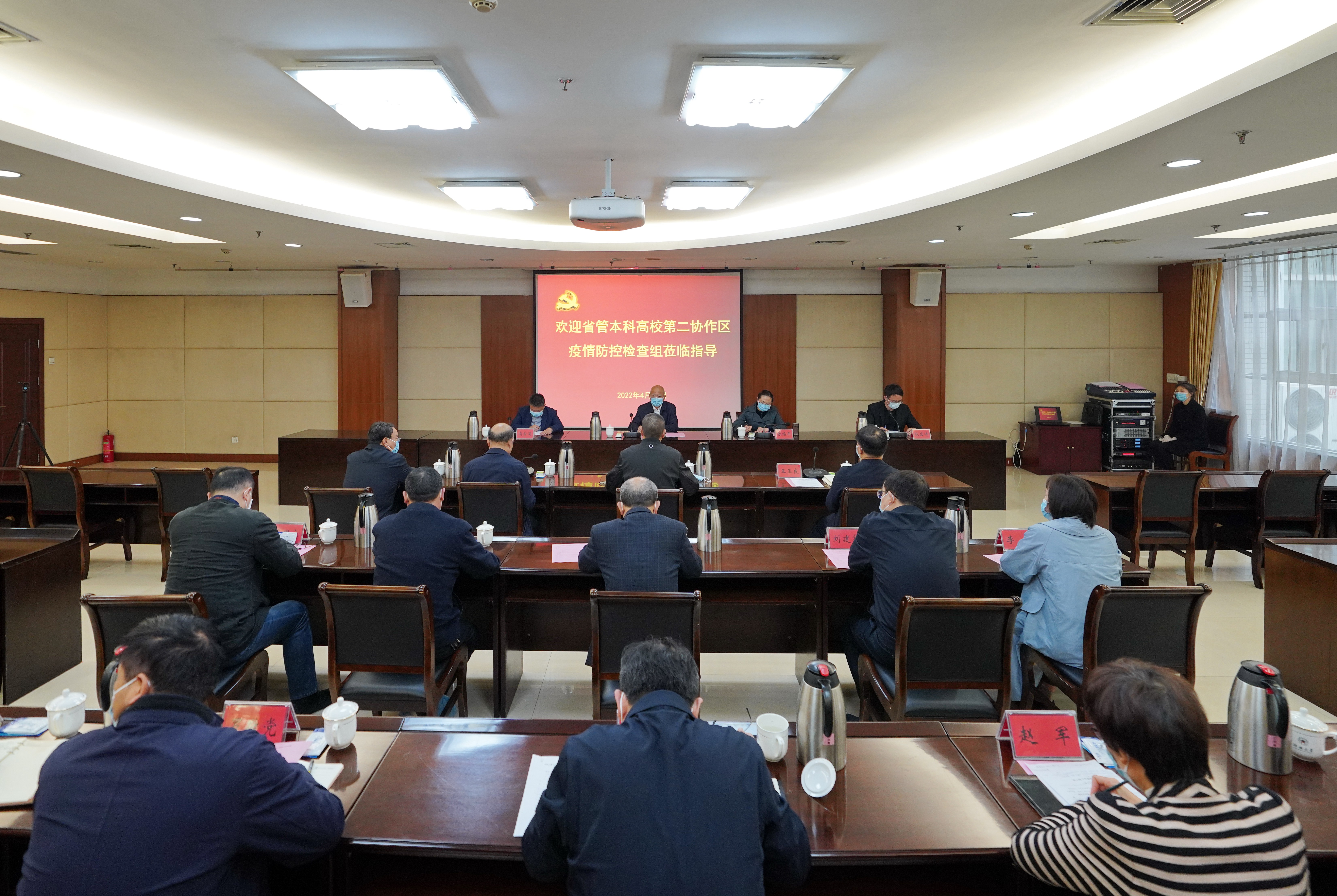 按照省纪委统一部署,4月15日上午,省管本科高校第二协作区疫情防控检查组组长、郑州轻工业大学纪委书记(监察专员)张晓根一行到best365英国在线体育官网检查指导疫情防控工作。校党委副书记吴宏阳、校党委常委、纪委书记(监察专员)许东升,常态化疫情防控与校园平安工作领导小组办公室、各工作专班负责人参加专题汇报。