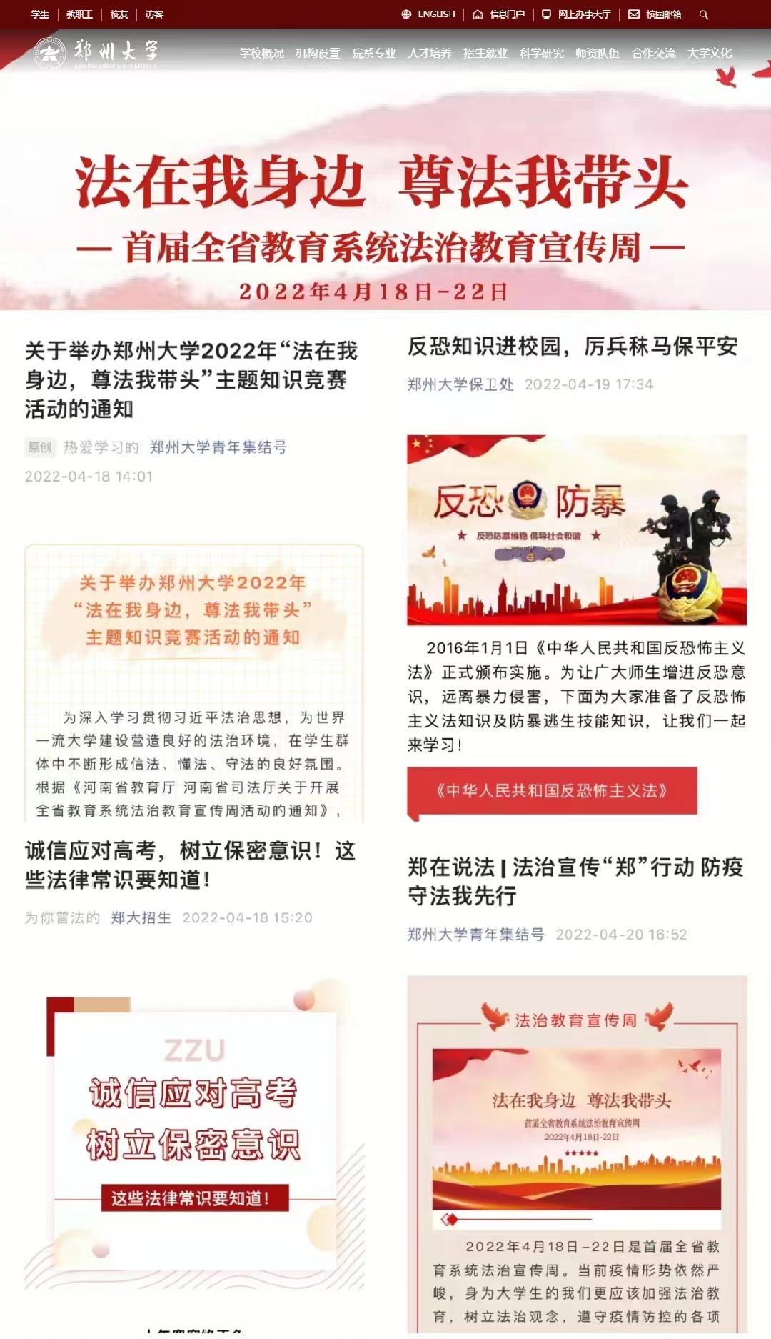 4月18日至22日是首届全省教育系统法治教育宣传周,best365英国在线体育官网相关部门及院系各司其职、协同配合、上下联动,围绕“法在我身边,尊法我带头”的主题采用灵活多样的方式,线上线下共同开展法治宣传教育系列活动。