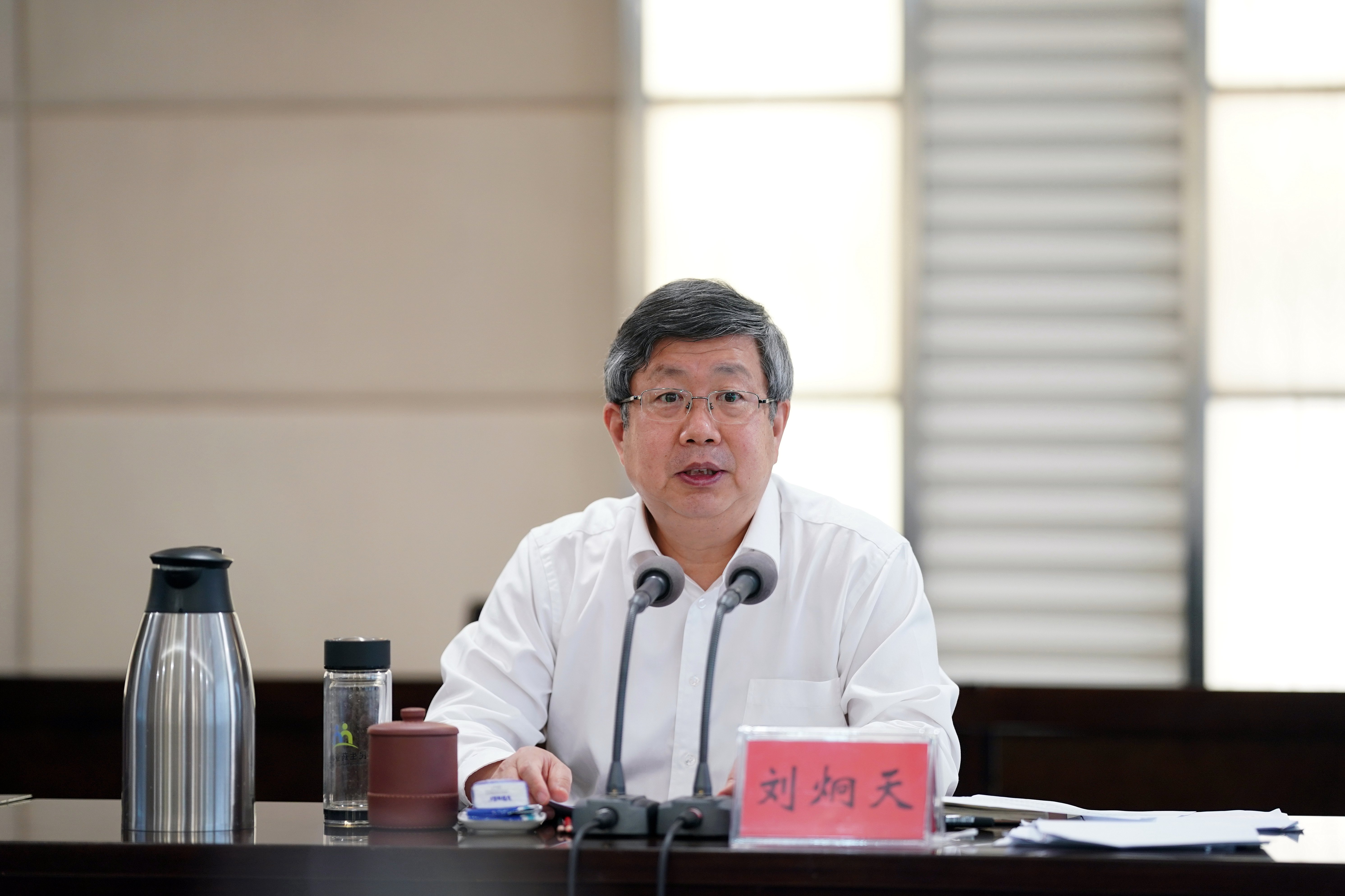 刘炯天听取大家的发言后作总结讲话,对做好期末教学、学生离校及校园安全稳定工作提出四点要求: