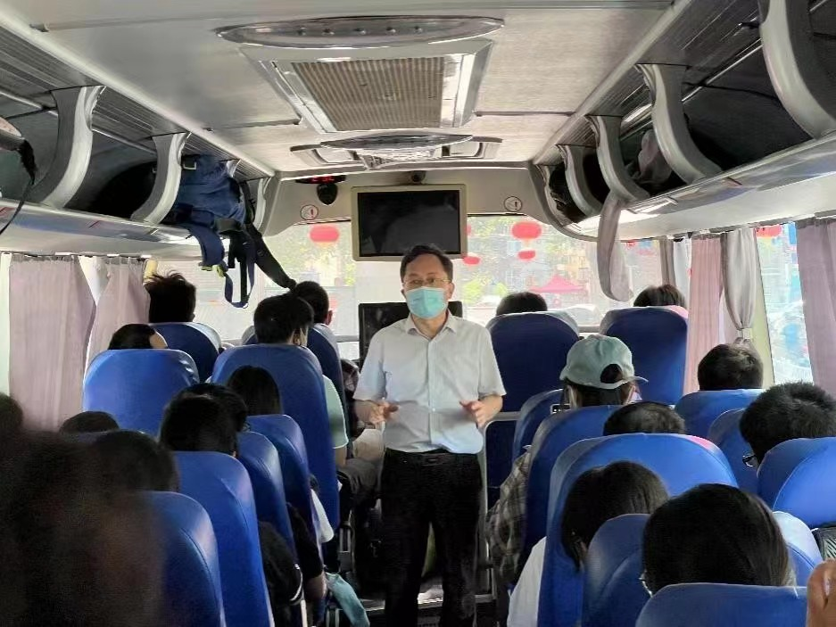 大巴车离开前,关绍康走进送站车内,慰问返乡同学,并提醒同学们在特殊时期要牢记“安全至上”的原则。他叮嘱大家不仅要注重个人疫情防护,也要时刻绷紧暑假安全“弦”,合理安排学习生活,静待云开“疫”散,与大家重聚校园。同学们纷纷表示会牢记教诲,认真学习,加强锻炼,不负学校期望,度过一个充实有收获的假期。