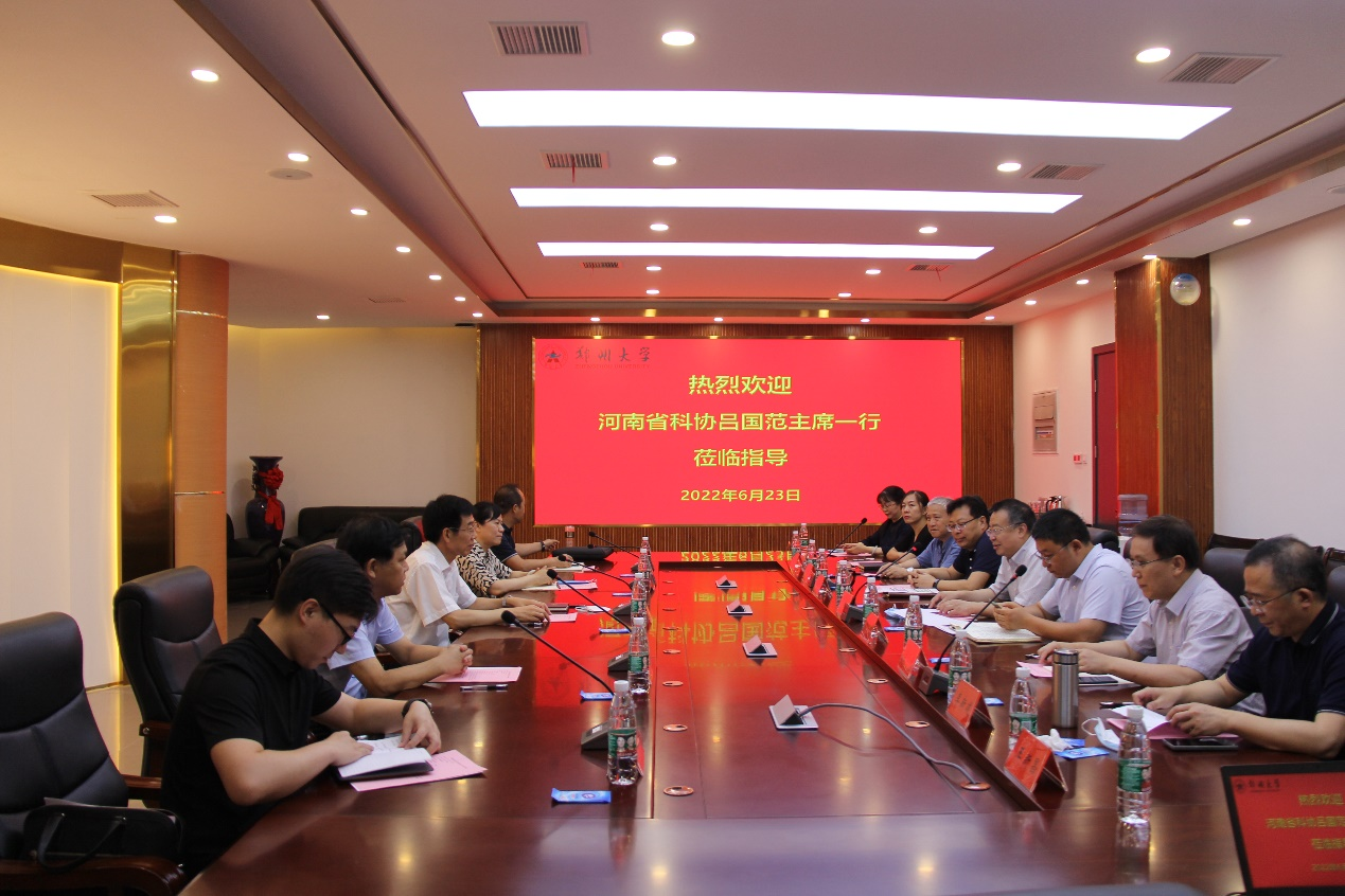 6月23日上午,河南省科协主席吕国范、副主席王继芬一行到best365英国在线体育官网调研,了解中国工程科技发展战略河南研究院运行情况和相关全省学会工作情况,并走访看望学会干部和一线科技工作者。河南省政协副主席、best365英国在线体育官网党委书记刘炯天院士会见了吕国范一行。