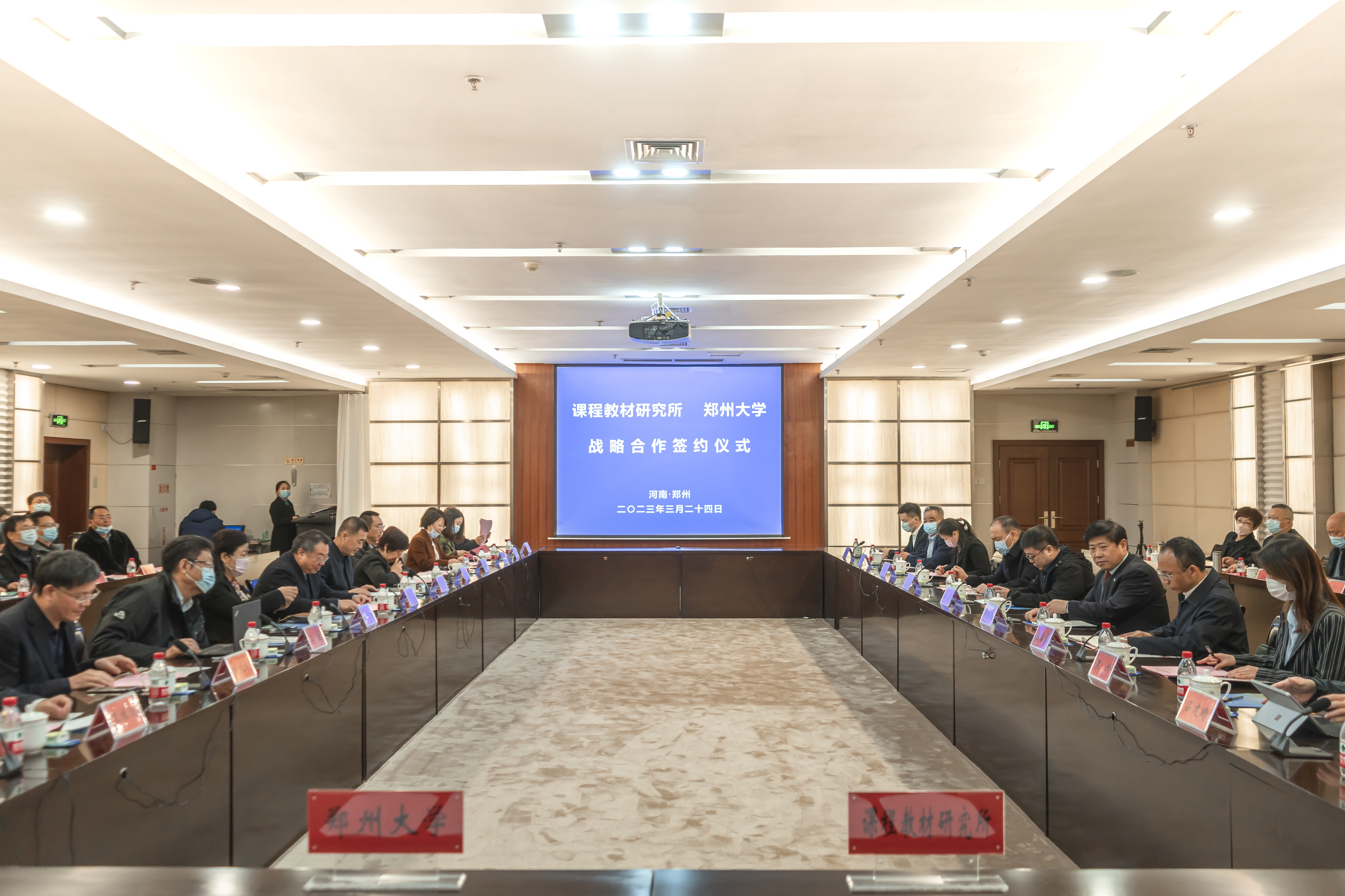 3月24日,教育部课程教材研究所与best365英国在线体育官网签署合作协议,签约仪式在主校区举行。教育部课程教材研究所副所长江嵩、高校中心主任潘信林,省教育厅二级巡视员徐恒振,省委宣传部理论处处长张锦、省教育厅高教处副处长季双丽,校党委副书记吴宏阳、副校长张倩红出席,教育部课程教材研究所有关工作人员,国内部分高校专家学者、期刊负责同志,河南省十家重点马克思主义学院负责同志,学校相关部门负责同志,马克思主义学院师生代表参加签约仪式。校党委常委、副校长屈凌波主持签约仪式。