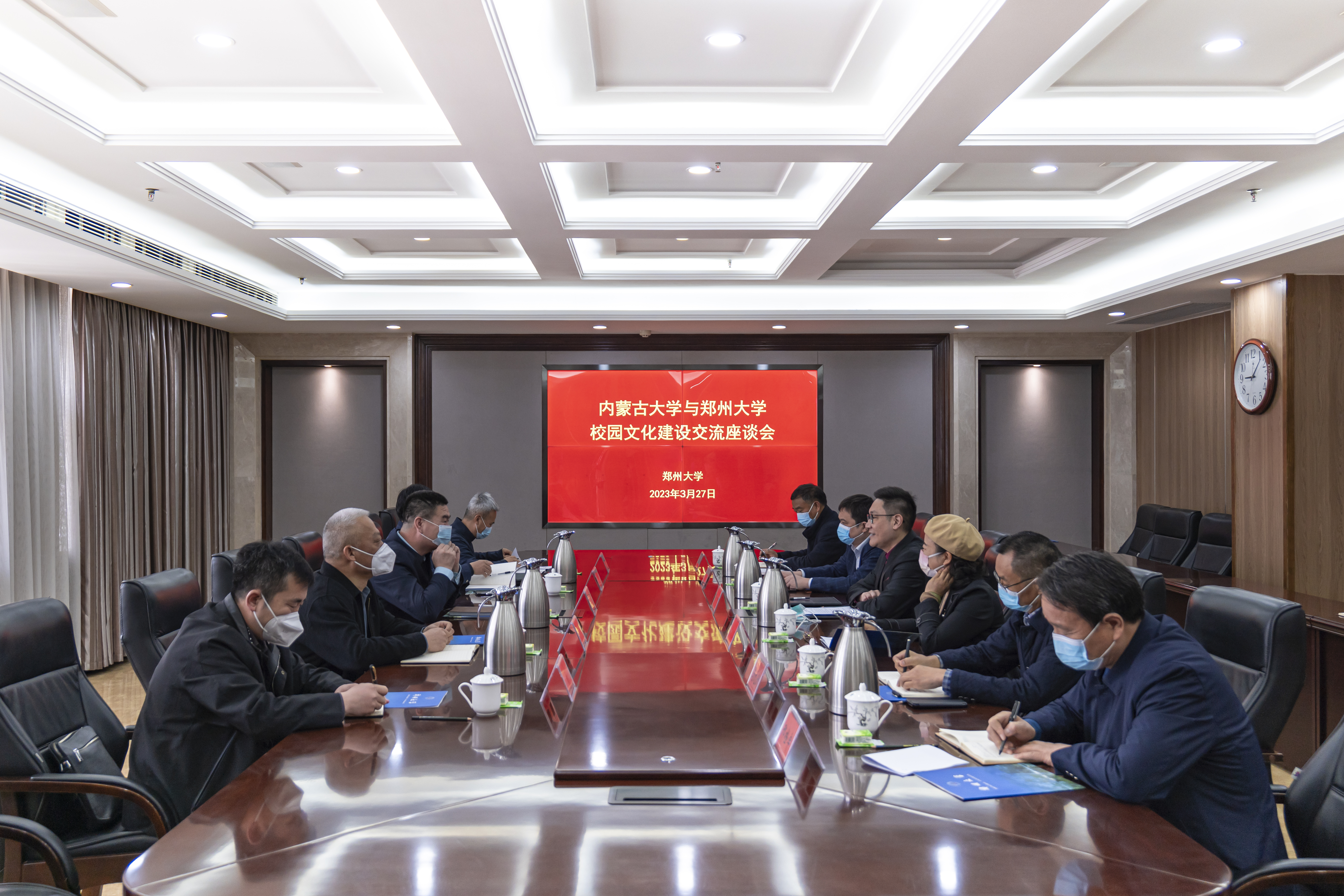 3月27日,内蒙古大学党委宣传部部长王烨辉一行来校交流校园文化建设,校党委副书记吴宏阳会见王烨辉一行。相关单位负责同志参加座谈会。会议由校党委常委、宣传部部长厉励主持。