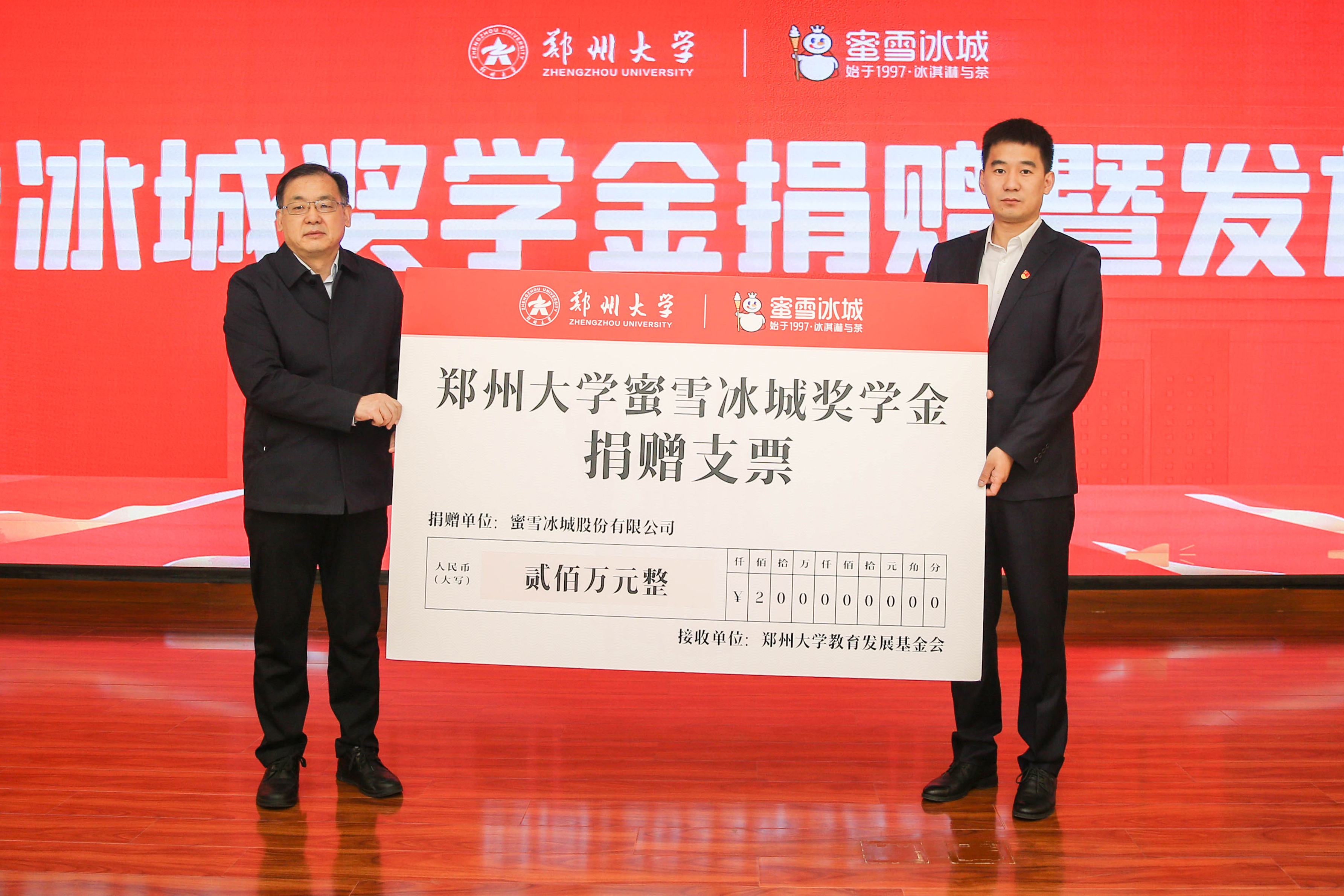 韩国河致辞。他代表学校对蜜雪冰城的慷慨捐赠表示感谢,并简要介绍了学校的发展近况和教育发展基金会的工作开展情况。他说,近年来,学校主动融入国家战略和地方发展,办学质量和水平、创新服务能力显著提高,在全国高校中的影响力也不断攀升,基金会多年来搭建了学校和校友以及社会之间沟通对接的桥梁,在学校人才培养、科学研究、基础设施建设等方面作出了重要贡献。他表示,best365英国在线体育官网取得的各项成绩,离不开一代代郑大人的奋勇拼搏,更离不开社会各界的鼎力相助。希望双方以此为契机,在科学研究、人才培养等领域继续加强交流合作,在校企协同发展中实现共赢。同时,他希望获奖的同学不忘初心、求是担当,把蜜雪冰城的这份爱心传承下去,做一个有家国情怀的人,以优异的成绩回报社会。