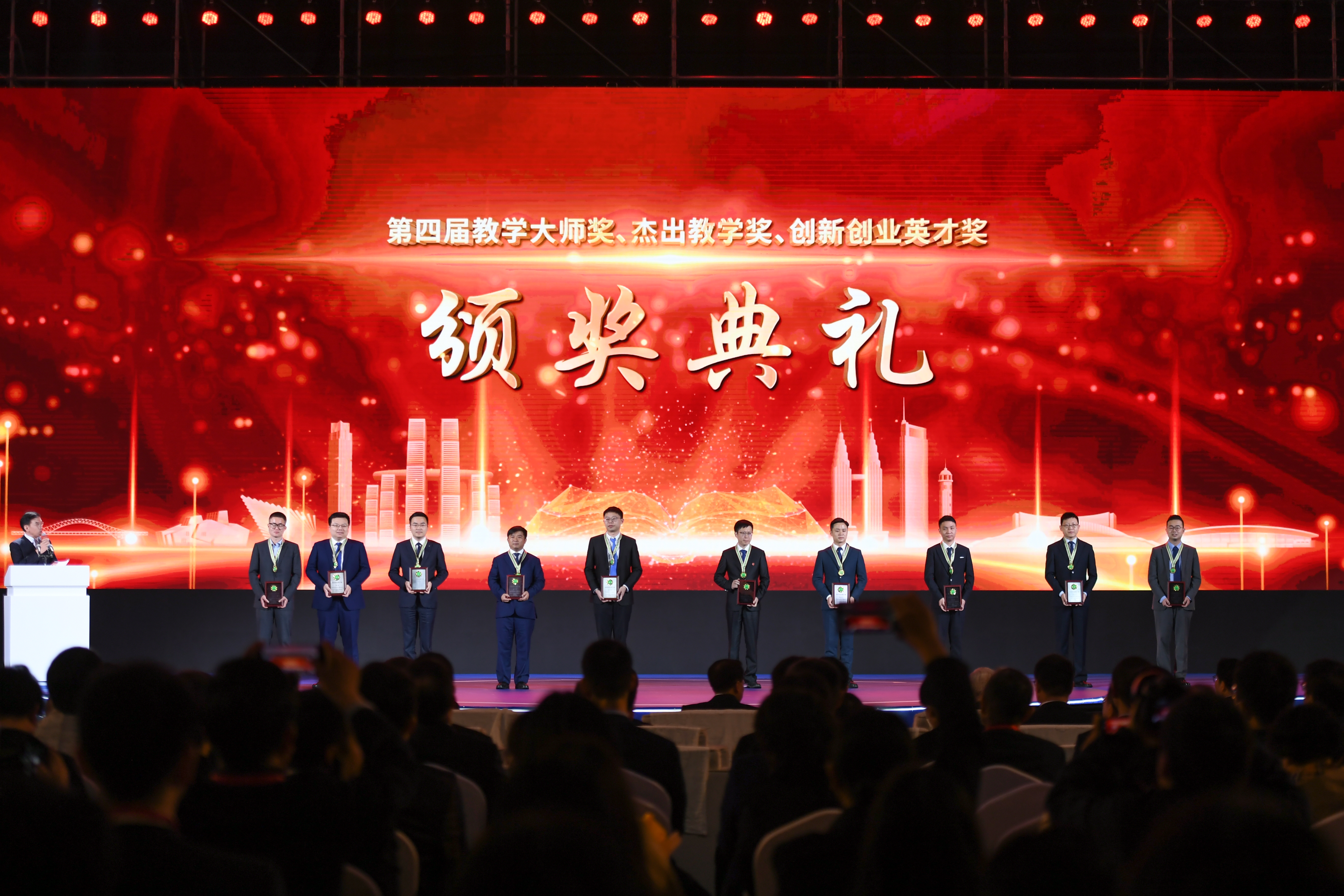 4月9日,全国第四届教学大师奖、杰出教学奖和创新创业英才奖颁奖典礼在重庆大学举行,best365英国在线体育官网2020级物理学院在读博士研究生石九龙荣获创新创业英才奖。中共中央政治局委员、重庆市委书记袁家军,教育部党组书记、部长怀进鹏,教育部党组成员、副部长吴岩等领导嘉宾出席颁奖典礼并为获得第四届教学大师奖、杰出教学奖、创新创业英才奖的老师和同学颁奖。校党委副书记吴宏阳应邀参加颁奖典礼。