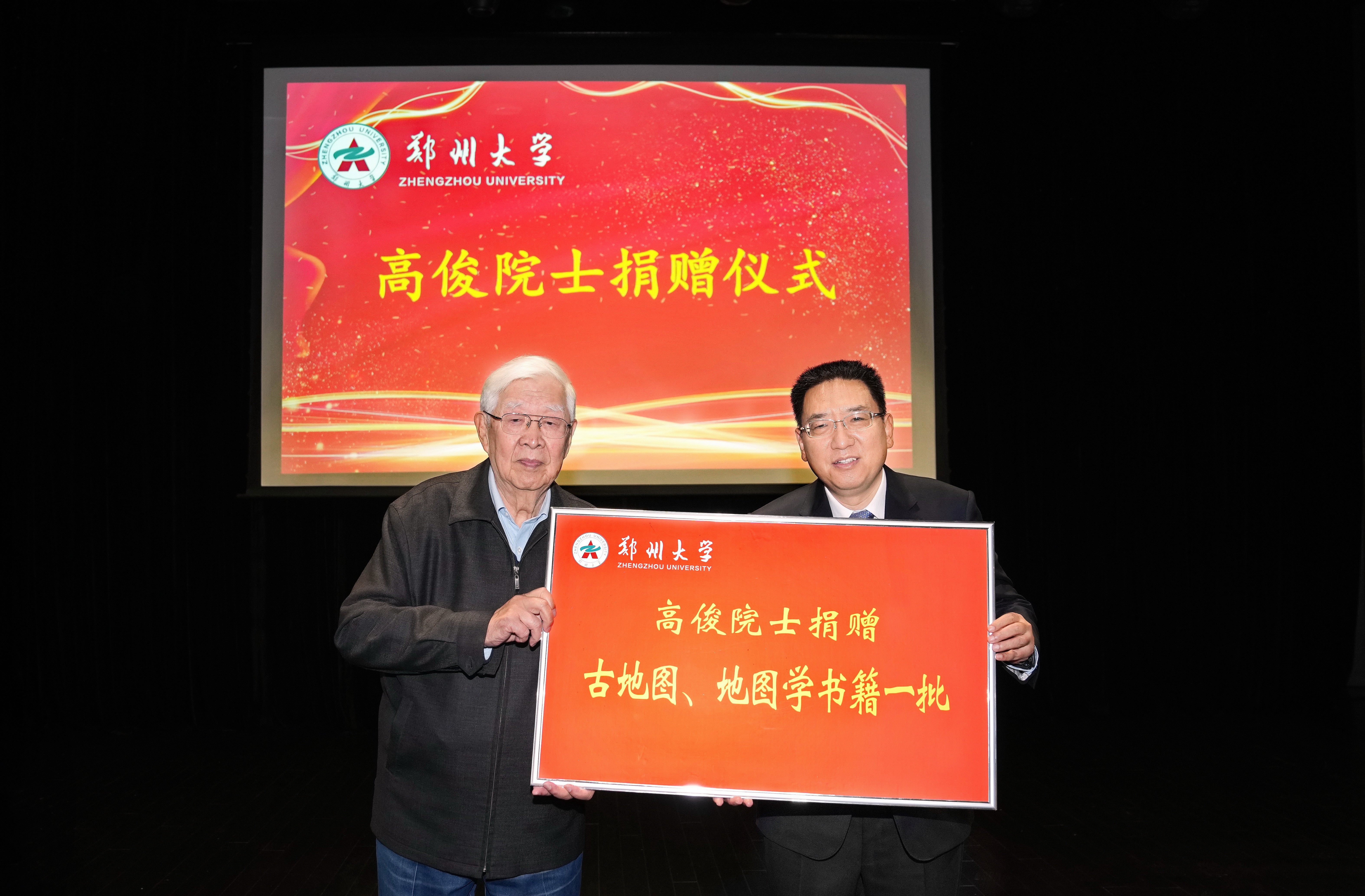 高俊院士捐赠了几十年来捜集积累的部分有关地图学的作品和书籍,并捐赠200万元设立高俊院士地图学空间认知学科发展基金。他介绍了建设地图博物馆和捐赠200万元的初衷,表示自己将跨过九十岁,有幸与地图相伴七十年,胸怀感恩之心进行捐赠,希望通过博物馆和学科平台的建设,实现推动best365英国在线体育官网地学学科发展、助力双一流学科建设。周成虎院士对发挥该学科平台优势、促进学科建设提出了指导意见,并代表中国科学院地理科学与资源研究所捐赠珍藏国家地图集。
